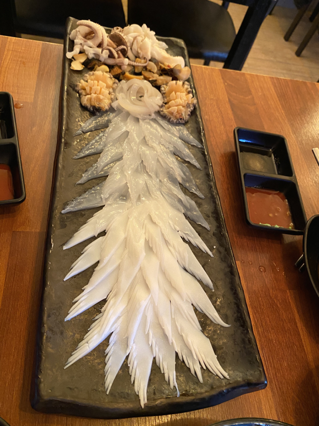 내부 조명이 너무 붉은데다가 사진기가 때마침 먹통이라 사진이 제대로 나오진 않았는데, 꼬들꼬들하고 부드럽고 달기까지 한 무늬오징어로 제주에서의 마지막 만찬을 즐겼습니다. 다음에도 기회가 되면 꼭 가 보고 싶은 가게였어요.