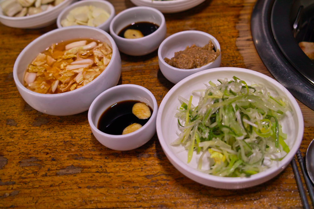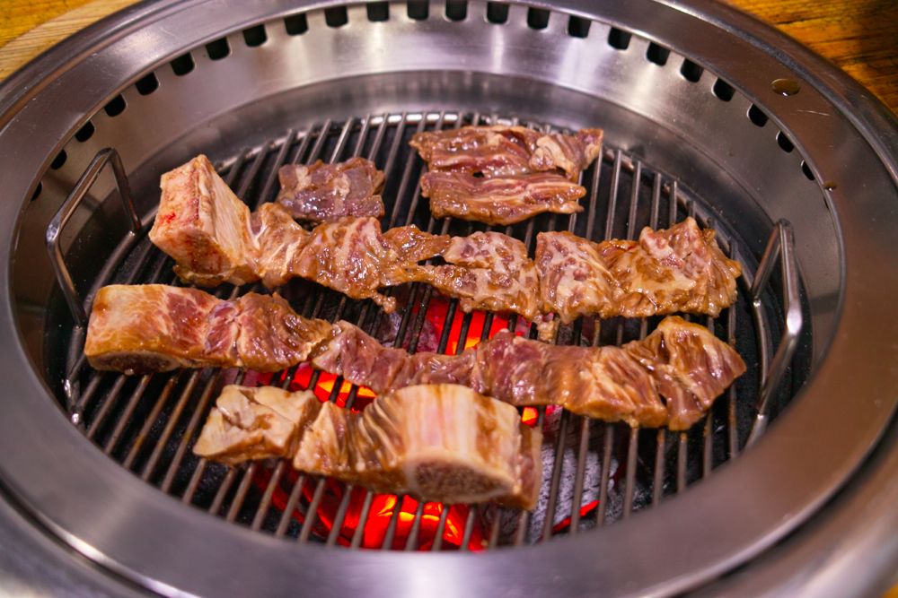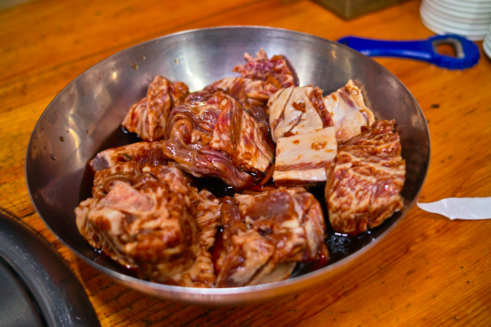 베이커리에서 산 빵들은 다음날 아침으로 먹으려 챙겨 놓고, 두 블럭 정도 떨어진 곳의 '문화갈비'라는 안동갈비집으로 갔습니다. 손님들이 북적북적해서 자리에 겨우 앉았지만, 주인 부부 분만 일하셔서 두 분이 대응하시는데 꽤나 바빠 보이시더군요. 3인분 이상만 된다고 해서 일단 3인분을 시켰는데, 고기부터 가져다 주시고는 밑반찬이랑 하나 하나 상이 채워져 나가더군요.