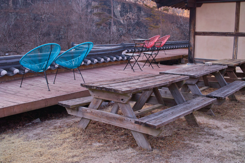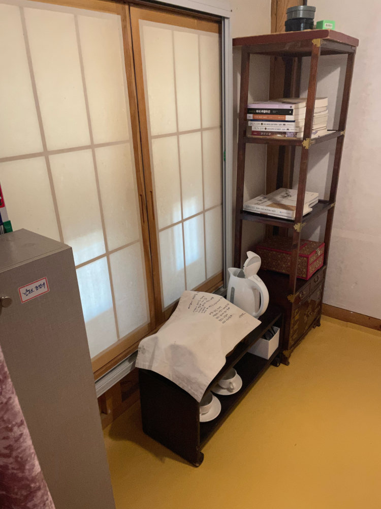 일단 짐들을 풀고, 건물 뒤 쪽에 간이 건물처럼 연결해서 만들어진 화장실 겸 세면/샤워실에서 어케 샤워를 하고... 근데 이게 목조 건물이랑 이어지다 보니 습기 차고 그래서 문제가 될까봐 되게 조심조심하게 되네요. 그리고 원래 건물이 아니다 보니 좁을 수밖에 없는 점은 고요한 이 계곡 자락의 건물에서 지니는 한적함과 고요함을 즐기는 것에 비하면 약간의 불편함 정도라고 할까나요...