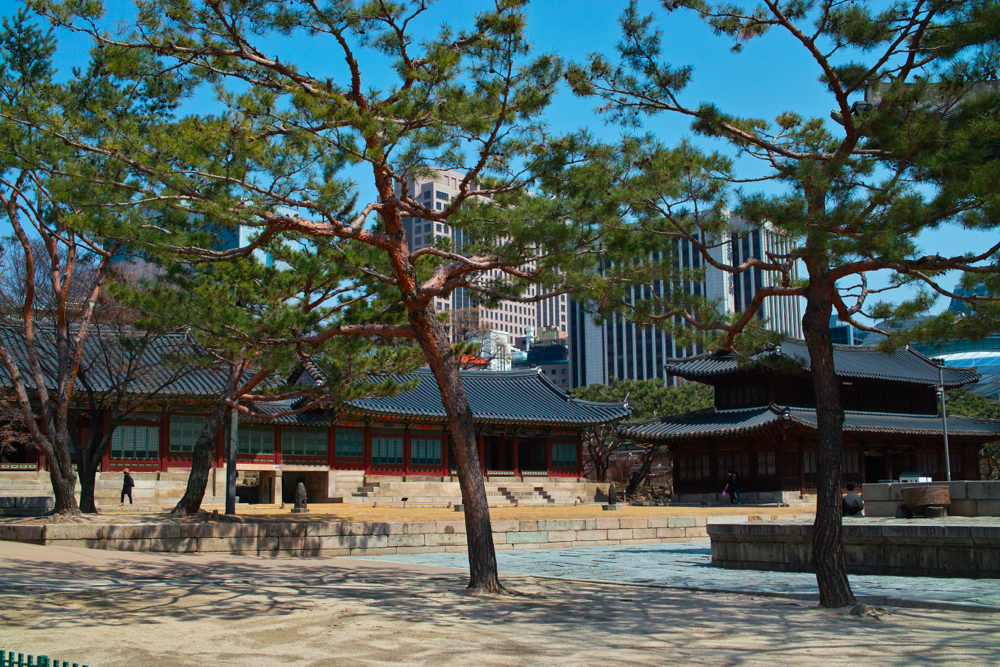 석어당 서편 옆으로도 뭔가 재밌는 2개의 전각이 있는데, 바로 즉조당(우편, 동쪽)과 준명당(좌편, 서쪽)입니다. 창덕궁에 희정당 건물이 'ㅁ'자 구조여서 전각들이 이어진 구조는 봤는데, 이 즉조당과 준명당은 2개의 별도의 전각으로 보이는데, 둘 사이가 단순하게 통로로만 사용되는 (별도의 방이 없어 보이는) 지붕 덮인 구조물로 이어진 게 좀 특이했었습니다.
