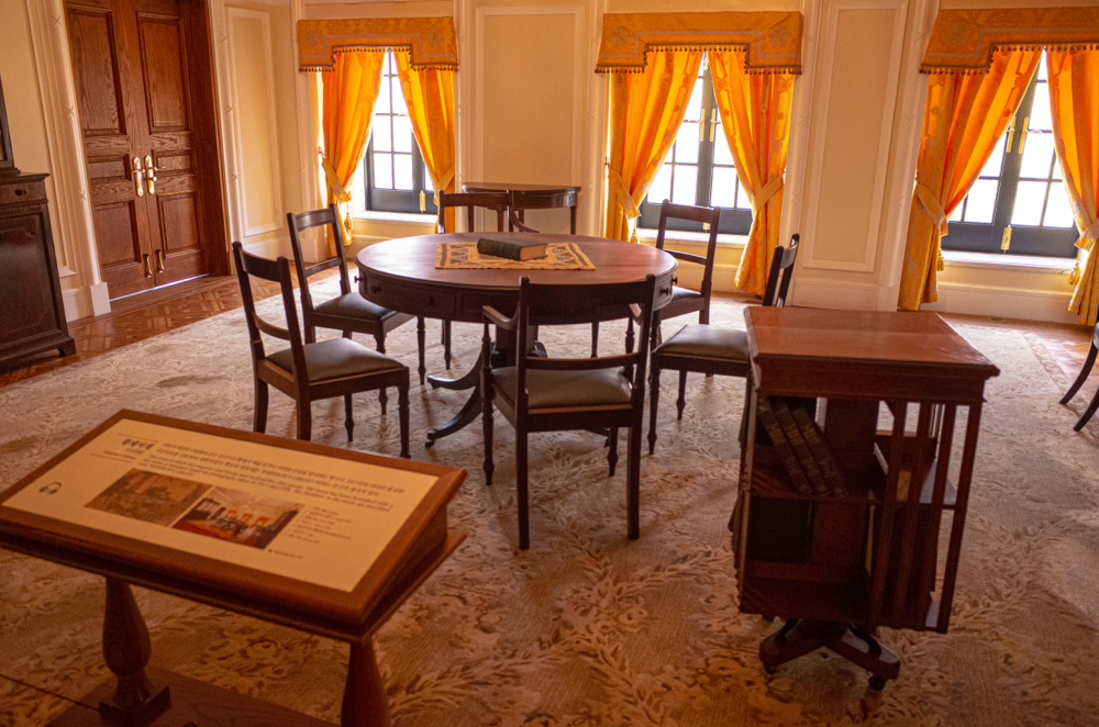 조명이 약하다 보니 사진을 열심히 찍었는데도, 조금 아쉬운 사진들이긴 하네요. 어쨌든 1층 동쪽 편을 보고는 2층 올라가기 전에 대기하던 홀에서 봤던 안쪽의 접견실을 둘러봤습니다. 조선 황실을 상징하는 오얏꽃 문양이 많고, 특히나, 학예연구사 분이 설명해주셨던, 이 접견실에서 가장 비싼 거울(당시 기술력 및 운송료 때문에)에 비치는 셀프 사진 찍는 시간 등을 가지면서, 그 화려함을 눈으로 즐기면서, 안내를 따라 2층으로 올랐습니다.