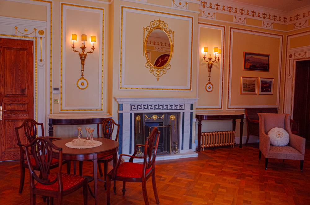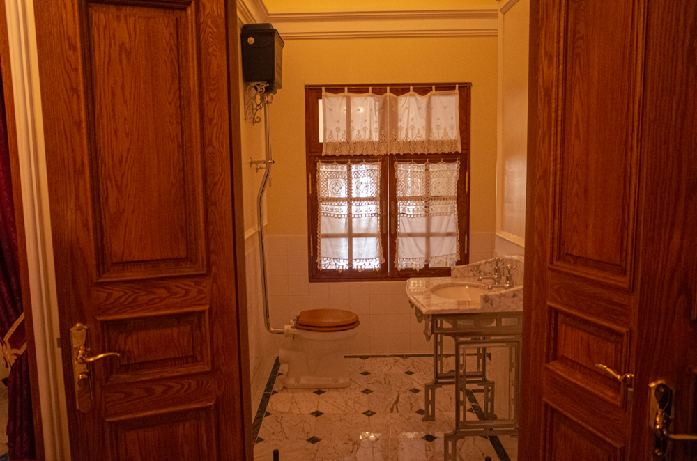 그리고 북쪽(건물 정면에서 보면 뒤쪽)으로 침실과 서재들이 있는데, 그 반대편 남쪽 공간으로는 아래와 같이 세면실/화장실과 욕조가 있는 욕실이 있더군요. (황제 전용과 황후 전용으로 나뉘어 있던 기억이...) 이게 전부 타일이 있었던 기록에서부터 시작해서, 당시 여러가지 자료들을 토대로, 그리고 건축 당시 납품했던 영국 회사의 카탈로그 내 모델 출시/제작연도 등을 비교하는 등의 노력을 통해서 다 재현하게 되었다는 설명에 정말.... 아 나도 이런 걸 하는 직업을 꿈꾼 적이 있었지 라면서.... 정말 여러 고생하신 분들의 노고에 경의를 표하고 싶더군요.