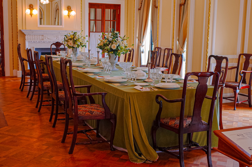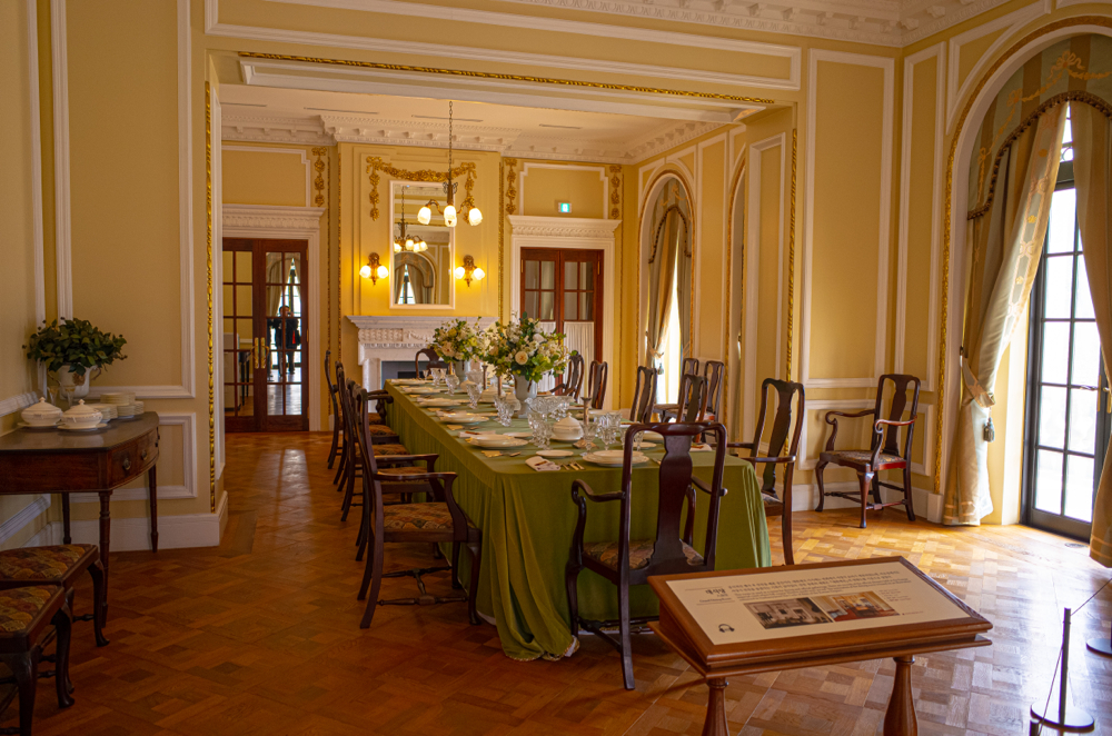 안내를 해 주신 학예연구사님이 이 곳이 덕수궁의 가장 베스트이자 은밀한 포토 스팟이라고 해서 마나느님과 몇 장 사진도 남기고는 서편 계단을 통해서 1층 서편 구역으로 내려갔더니, 이 곳은 대식당이더군요. 중세 영화에서나 또는 대저택에서 보던 그런 기~다란 식탁에 고가의 접시들이 쫘악 깔려 있는.... 그리고, 이 대식당의 한쪽 구석에는 2층에 있던 욕실/세면실/화장실로 올라가던 수도 배관을 볼 수 있어서 좋았습니다.