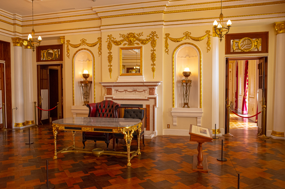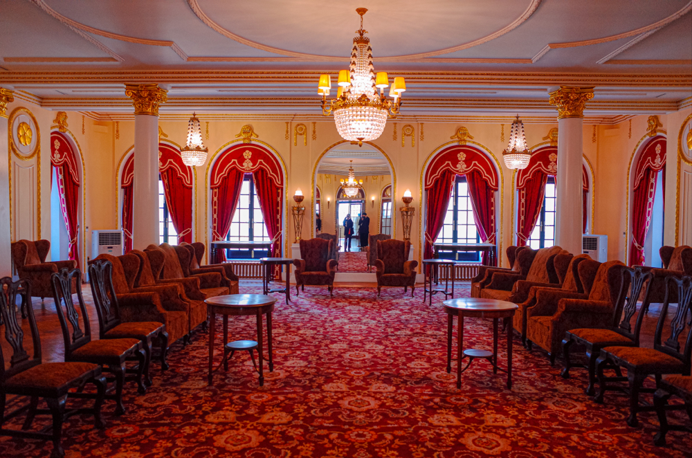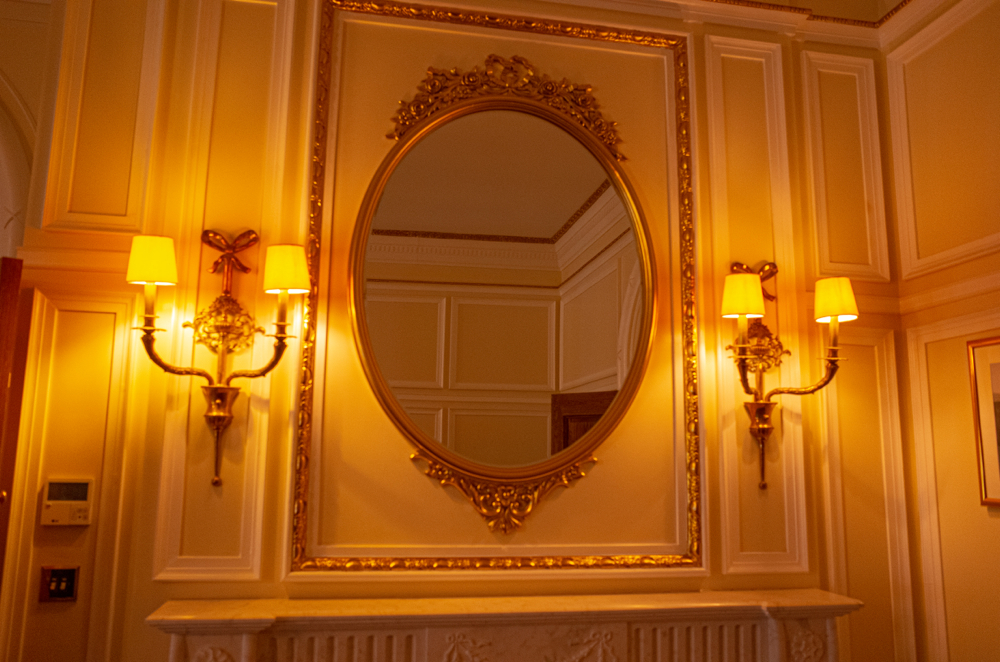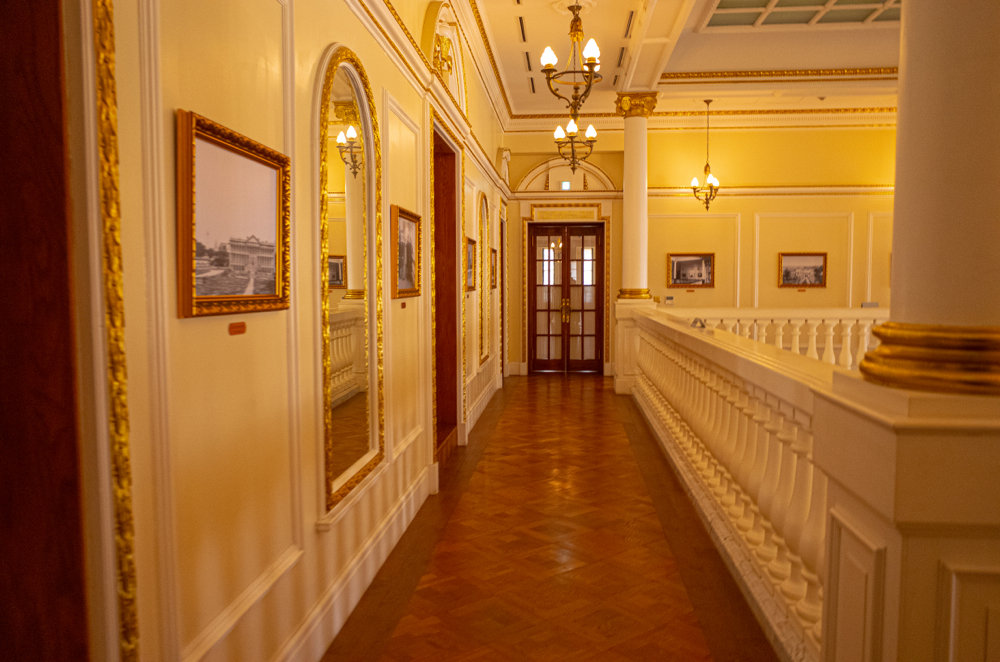 조명이 약하다 보니 사진을 열심히 찍었는데도, 조금 아쉬운 사진들이긴 하네요. 어쨌든 1층 동쪽 편을 보고는 2층 올라가기 전에 대기하던 홀에서 봤던 안쪽의 접견실을 둘러봤습니다. 조선 황실을 상징하는 오얏꽃 문양이 많고, 특히나, 학예연구사 분이 설명해주셨던, 이 접견실에서 가장 비싼 거울(당시 기술력 및 운송료 때문에)에 비치는 셀프 사진 찍는 시간 등을 가지면서, 그 화려함을 눈으로 즐기면서, 안내를 따라 2층으로 올랐습니다.