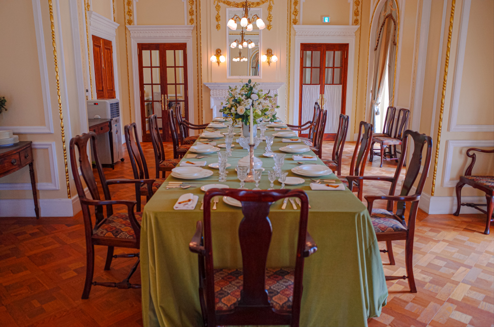 안내를 해 주신 학예연구사님이 이 곳이 덕수궁의 가장 베스트이자 은밀한 포토 스팟이라고 해서 마나느님과 몇 장 사진도 남기고는 서편 계단을 통해서 1층 서편 구역으로 내려갔더니, 이 곳은 대식당이더군요. 중세 영화에서나 또는 대저택에서 보던 그런 기~다란 식탁에 고가의 접시들이 쫘악 깔려 있는.... 그리고, 이 대식당의 한쪽 구석에는 2층에 있던 욕실/세면실/화장실로 올라가던 수도 배관을 볼 수 있어서 좋았습니다.