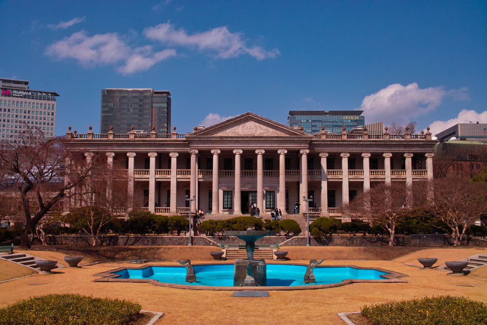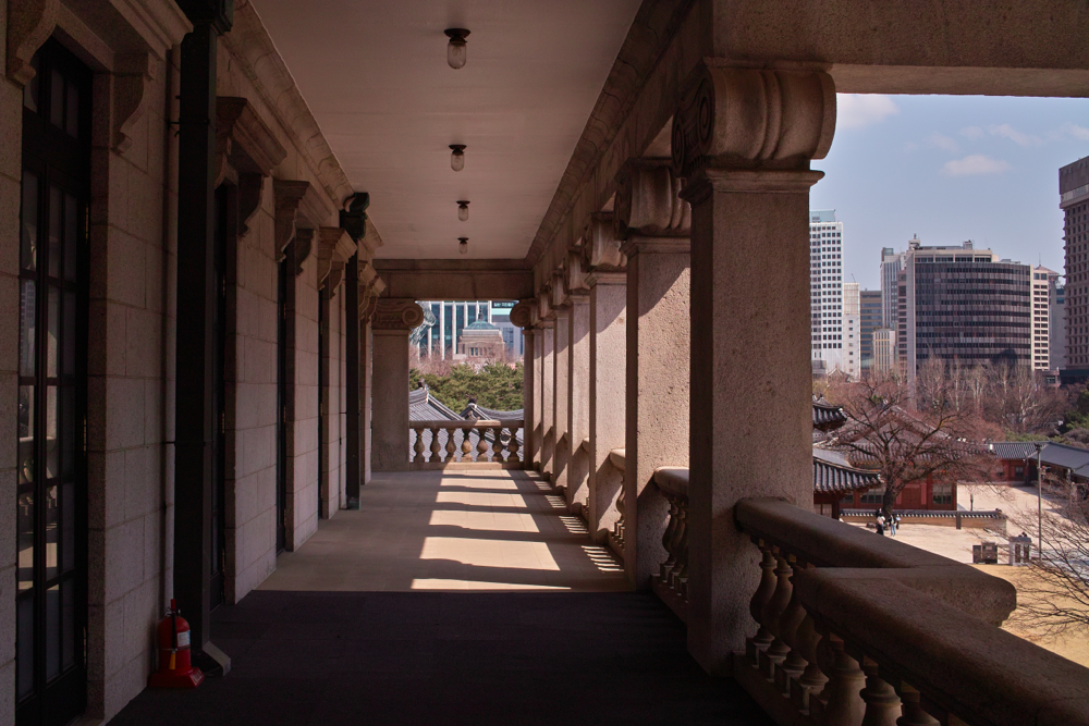 그리스 신전이나, 유럽 어디메의 의사당 건물 같은 걸 떠올리게 하는 석조전의 외관 모습인데요.