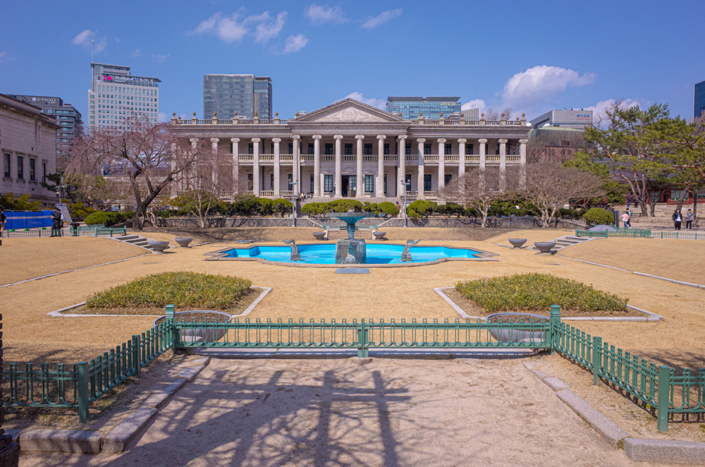 덕수궁에는 일반적으로 조선 왕조의 궁궐 내 건물이라고 보기에는 약간의 이질감을 느끼게 하는 건물이 몇 개 존재합니다. 덕수궁 권역이지만, 별도로 떨어져 있는 건물(중명전)이나 내조 제일 안 쪽에 있고 녹색 지붕이라 상대적으로 눈에 잘 안 띄는 전각(정관헌) 말고 가장 대표적인 건물이 아마 석조전일 겁니다. (그 옆의 국립현대미술관은 궁궐 전각이 아니라 일제가 미술관 용도로 덕수궁 궐내에 만든 건물이지 궁궐 전각이 아닙니다.)