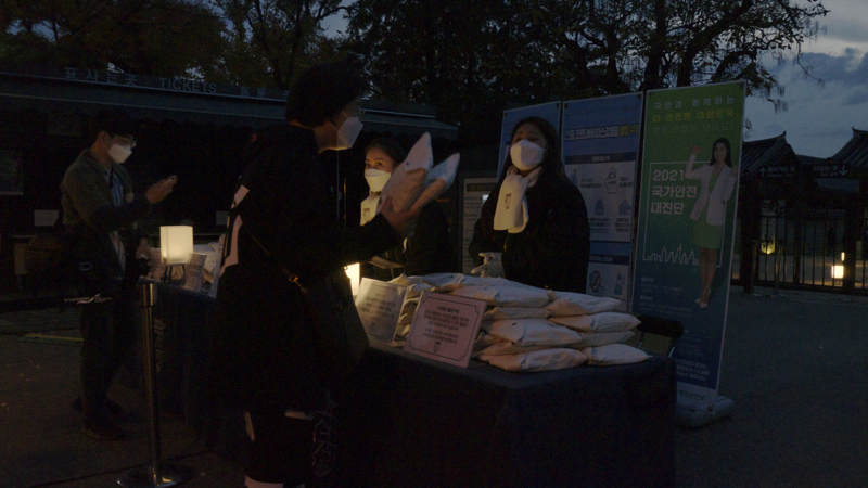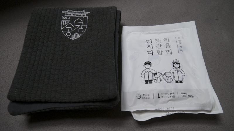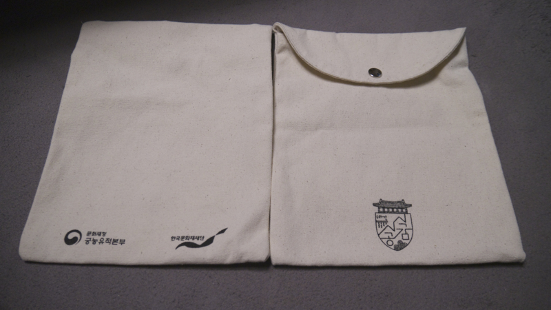행사의 집합 장소는 경복궁의 동쪽문인 건춘문에서 좀 더 삼청동으로 올라가면 있는 국립민속박물관 쪽 출입문에서, 예약한 이들만 입장시키면 안쪽에 예약자 확인과 행사 참여에 필요한 이것저것과 또 날이 춥다 보니 귀여운 목도리를 기념품을 하나 주더군요.