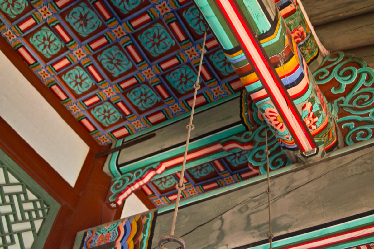 그리고 누각 안쪽의 천장에는 화려한 문양들이 있었고, 또, 문 아래쪽을 들어올려서 매달아 둬서 내부까지 모두 통풍이 되고 시야가 확보될 수 있도록 하는 장치도 있더군요.