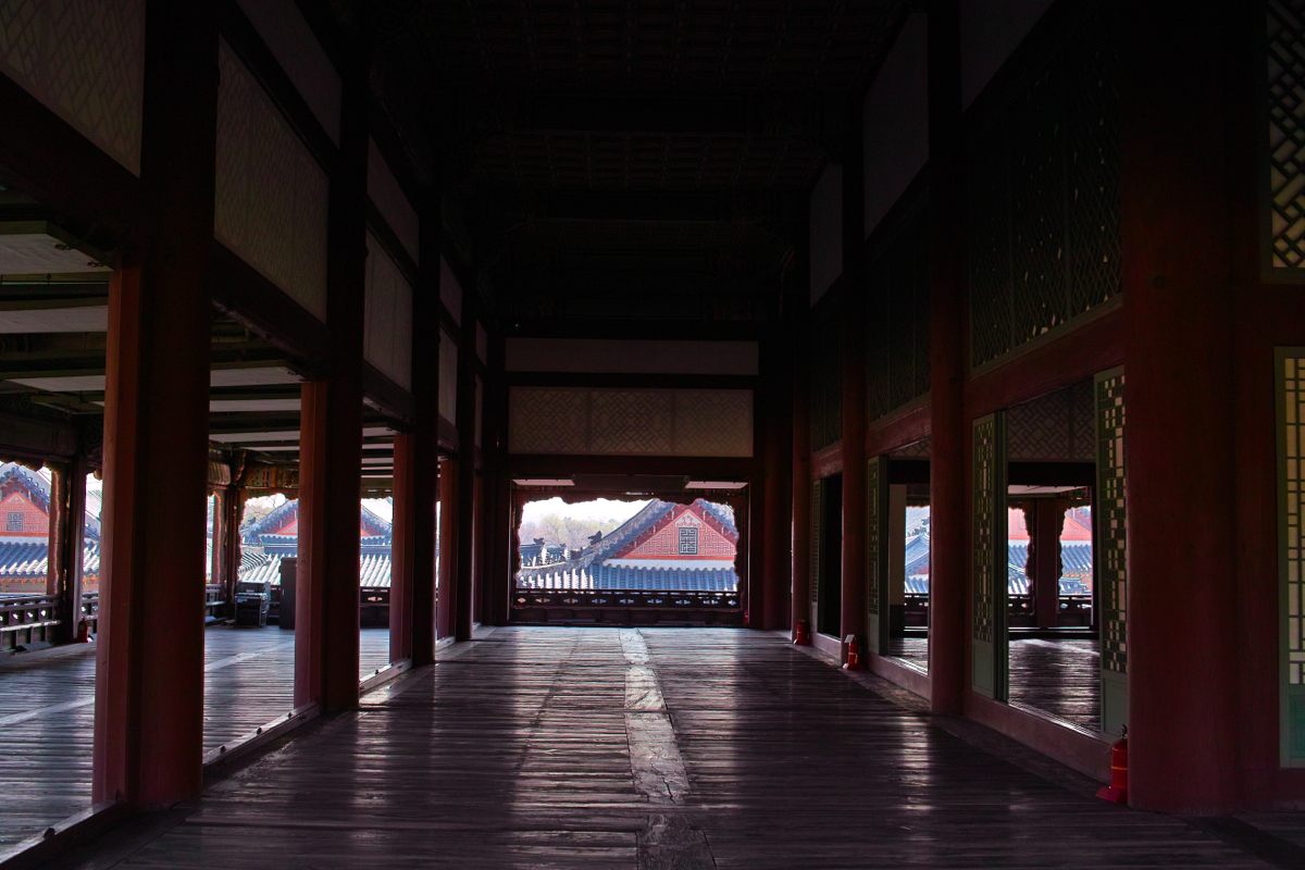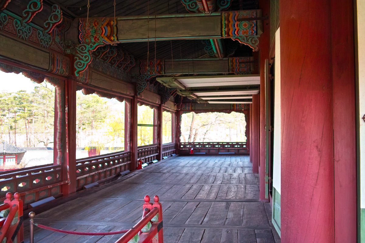 그리고 누각 안쪽의 천장에는 화려한 문양들이 있었고, 또, 문 아래쪽을 들어올려서 매달아 둬서 내부까지 모두 통풍이 되고 시야가 확보될 수 있도록 하는 장치도 있더군요.
