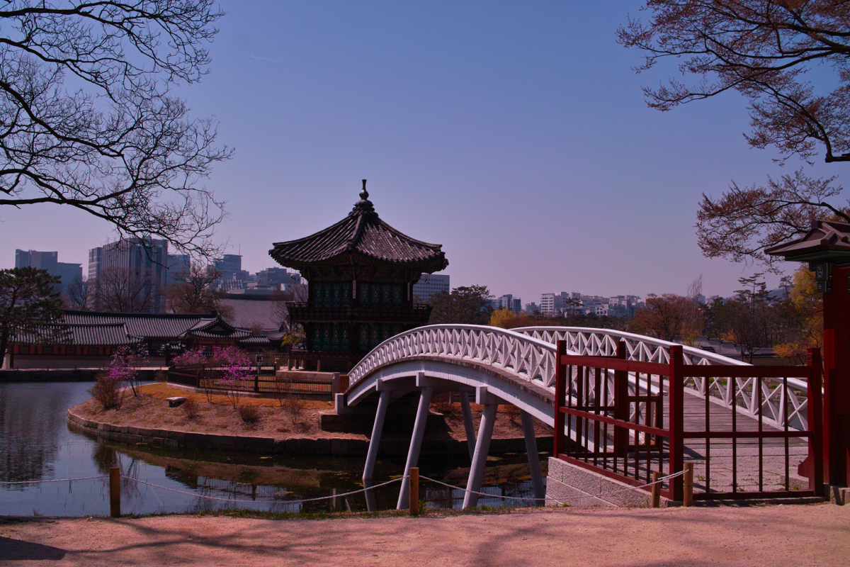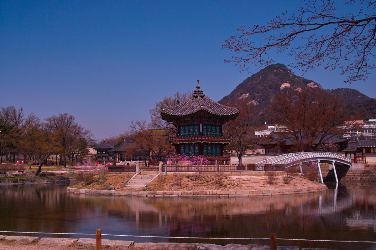 한동안 공사로 그 모습을 볼 수 없었던 향원정(香遠亭)이 드디어 그 모습을 드러냈습니다. 고종 즉위 후 흥선대원군이 경복궁을 중건하면서 후원 영역에 인공호수인 향원지(香遠池) 가운데 서 있는 향원정인데요. 이전에 복원된 건물이 다리의 방향이 원래랑 다르고, 많은 관람객으로 내부 안전의 문제가 있어서 이번에 다리 위치도 약간 북쪽으로 옮기고, 건물도 보강해서 세워졌습니다. 화창한 봄날 점심에 북한산을 배경으로 한 향원정은 참 아름답더군요. 저 안에 들어가는 특별관람은 언제하나 궁금해 하며, 봄날 아침 경복궁 나들이의 마무리를 하려 남으로 또 발걸음을 옮겼네요.