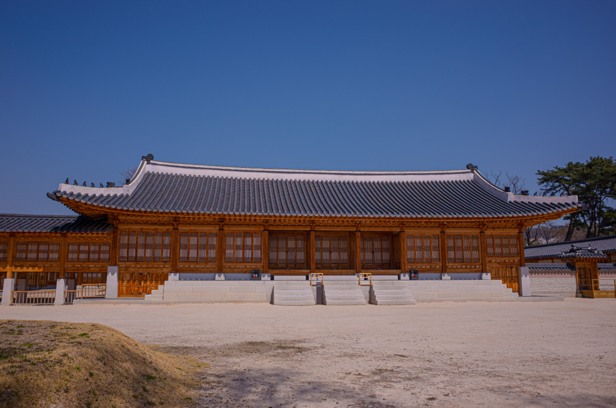 이 두 전각을 보고 나오면 교태전을 가기 전에 새로이 지은 전각을 하나 만날 수 있는데 이게 바로 흥복전(興福殿)입니다. 위 두 건물과 마찬가지로 중건 때 새로 지어진 건물인데, 일제 시대에는 헐렸고 이 자리는 일본식 정원이 있었는데, 2019년에 다시 복원되었지만, 현재 단청 등 마무리 부분에 있어서 고증을 더한 이후에 진행할 예정이라 23년이나 되어야 제 모습이 될 거라고 하네요.