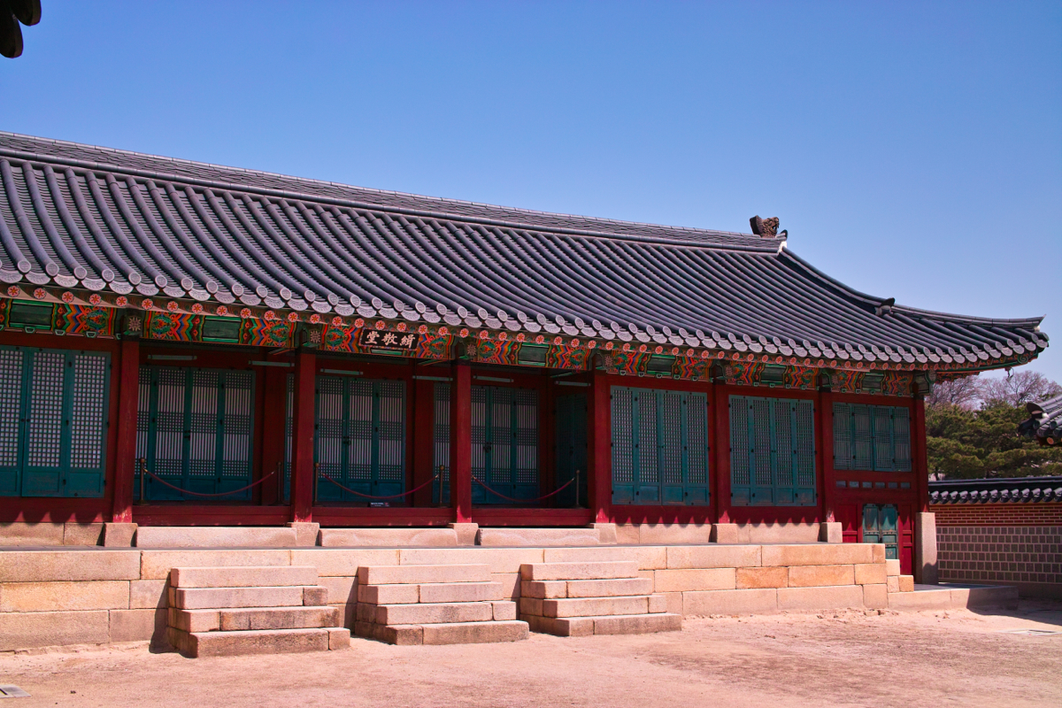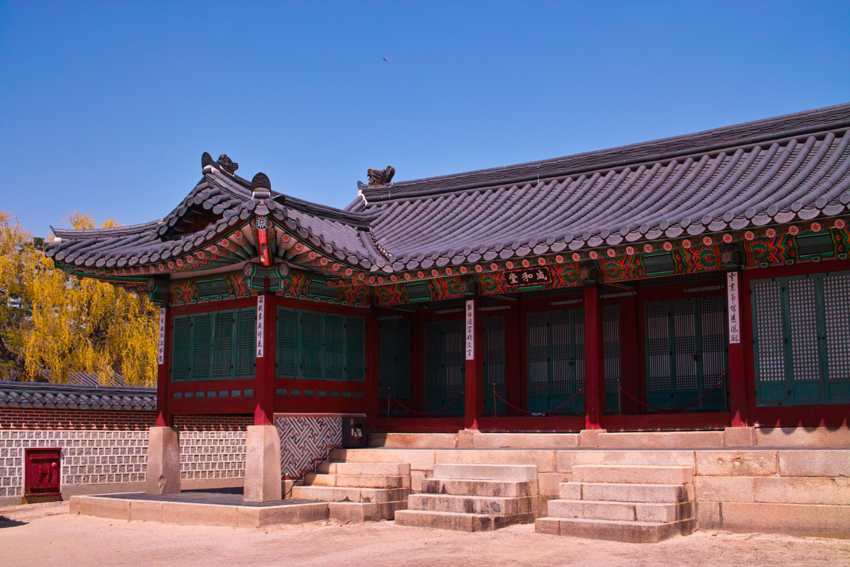 이 두 전각을 보고 나오면 교태전을 가기 전에 새로이 지은 전각을 하나 만날 수 있는데 이게 바로 흥복전(興福殿)입니다. 위 두 건물과 마찬가지로 중건 때 새로 지어진 건물인데, 일제 시대에는 헐렸고 이 자리는 일본식 정원이 있었는데, 2019년에 다시 복원되었지만, 현재 단청 등 마무리 부분에 있어서 고증을 더한 이후에 진행할 예정이라 23년이나 되어야 제 모습이 될 거라고 하네요.