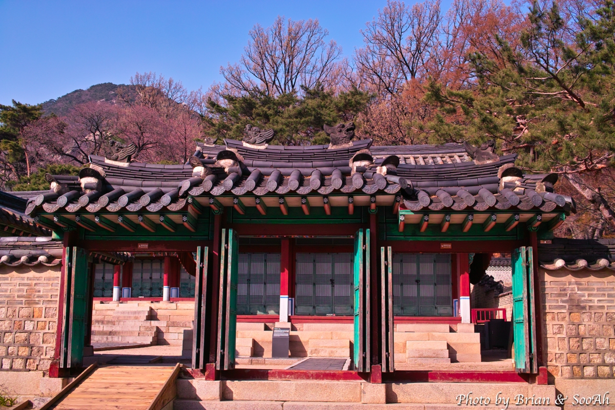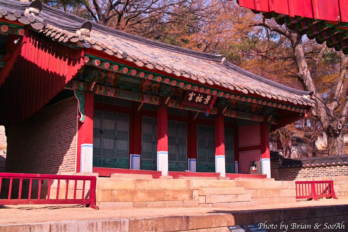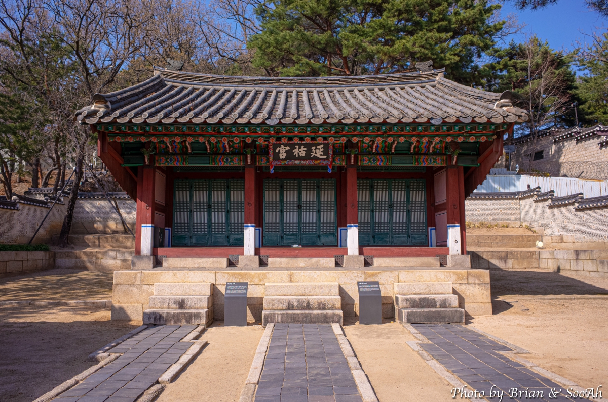 그러고는 가장 숨겨져 있는, 오른쪽에 있는 남은 한 건물...엥 5개의 사당이라고 해놓고는 왜 4개밖에 없지 했더니, 이 4번째인 오른쪽 안 건물도 2분을 함께 모신 합사이더군요. 먼저 21대 영조의 후궁이자, 22대 정조의 친할머니, 즉 사도세자의 친어머니가 되는 영빈 이씨를 모시는 선희궁(宣禧宮)과, 22대 정조의 후궁이자 23대 순조의 친어머니가 되는 수빈 박씨를 모시는 경우궁(景祐宮)이 하나의 전각으로 되어 있고, 앞서 육상궁과 연호궁의 경우처럼 손위사람인 선희궁 현판이 안쪽에 손아래사람인 경우궁 현판이 바깥쪽에 있어서, 가까이 가서 보지 않으면 경우궁 현판만 보인답니다.