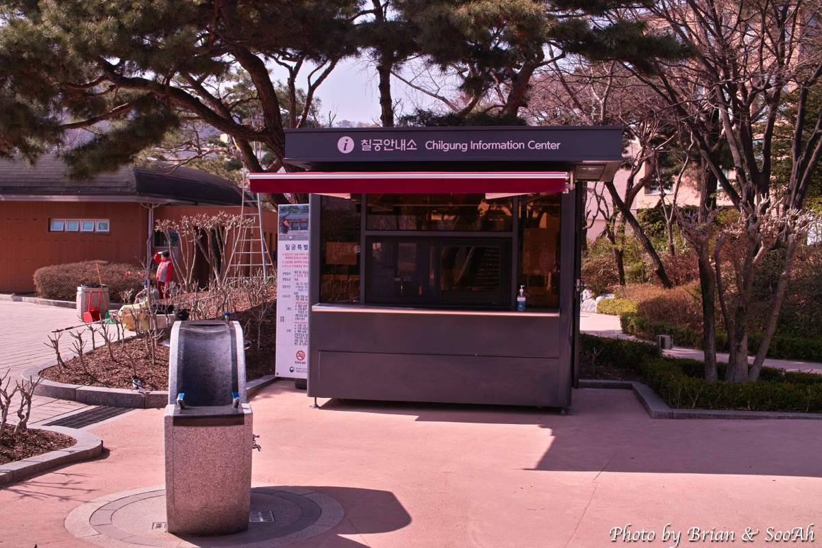이 재실 앞에서 간략하게 칠궁에 대한 안내를 받았습니다. 원래는 경복궁의 후원 구역이었지만, 이후 경복궁의 권역이 줄어들면서 경복궁 바깥에 존재하게 되었고, 원래는 영조가 자신의 친모인 19대 임금 숙종의 후궁인 숙빈 최씨의 사당을 옮겨 와서 육상궁(毓祥宮)이라는 곳을 만들게 되었는데, 이후 고종 때 화재로 전소되었다가 이후에 실제 왕으로 즉위했거나 사후 추존된 왕의 친어머니에 해당하는 후궁들의 사당을 이 곳에 모으게 되면서, 이후 조선 마지막 임금 순종의 후궁이자 영친왕의 어머니인 순빈 엄씨의 사당까지 모이게 되면서 총 7분의 임금의 친모인 후궁이 모이게 되어, 별칭인 "칠궁"으로 불리게 되었다고 하네요.