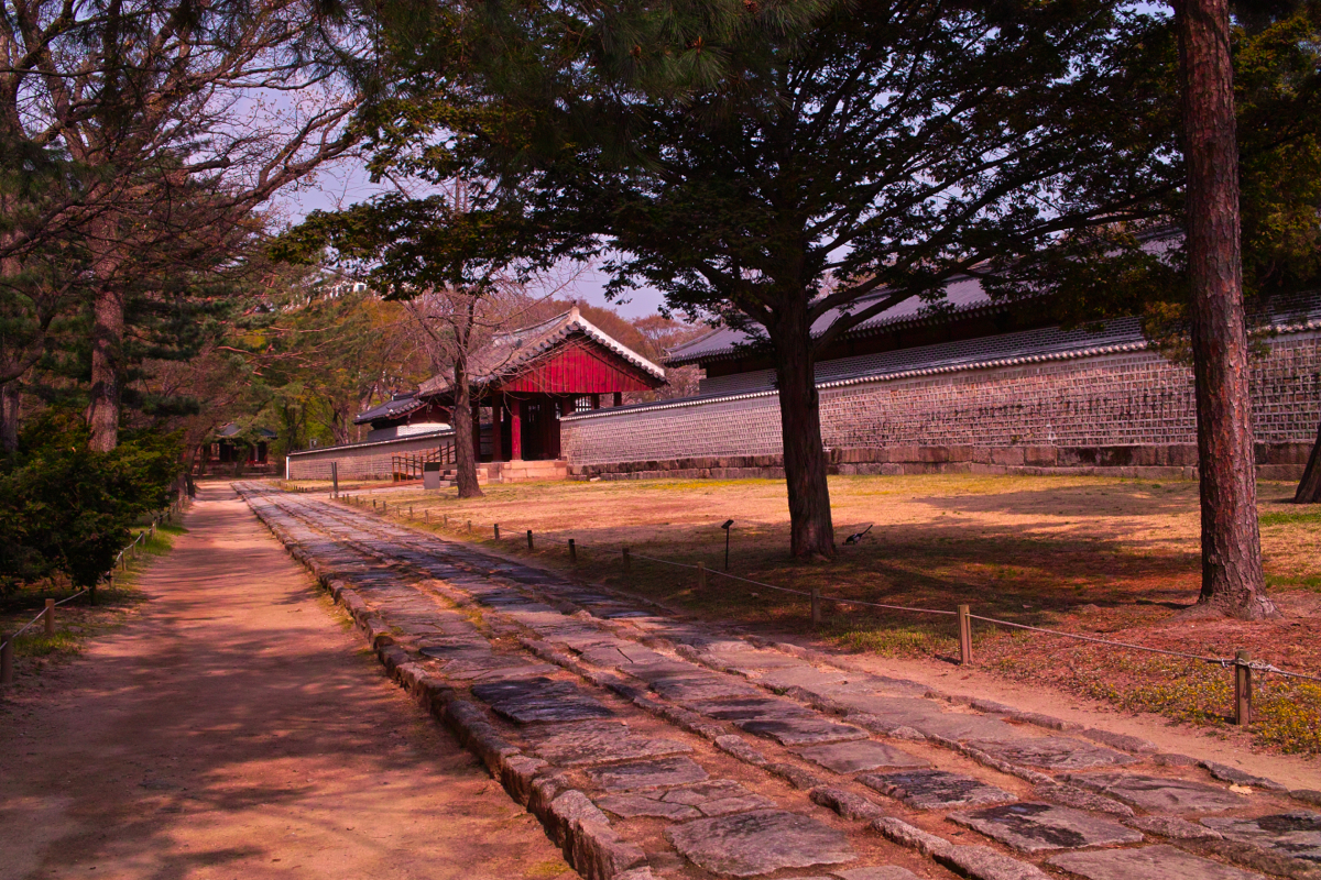 외대문을 지나 들어가니 궁궐에서나 왕릉에서 자주 보던 중앙이 높은 3개의 구역으로 나뉜 돌을 깔아둔 길이 보이더군요. 그리고 들어서자마자 왼쪽과 오른쪽에 연못(인공정원인지는 잘 모르겠음)이 있어서 뭔가 차분한 느낌이 들어서 좋았습니다.