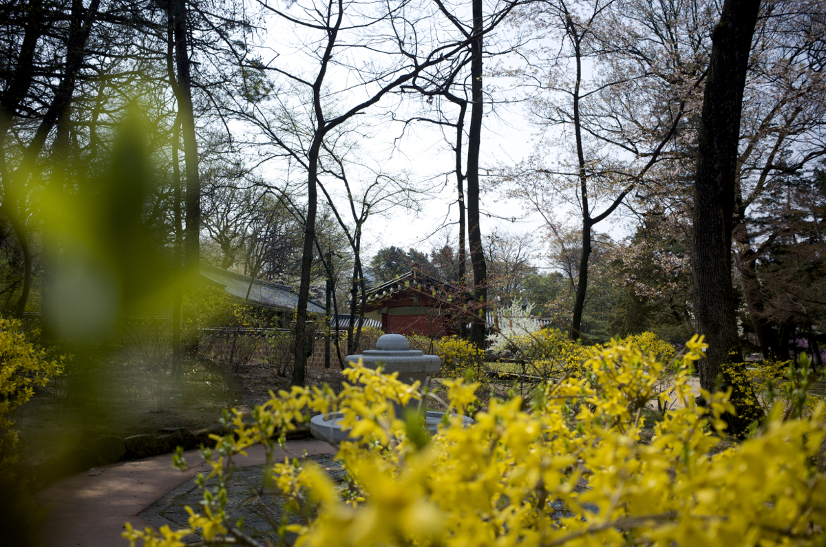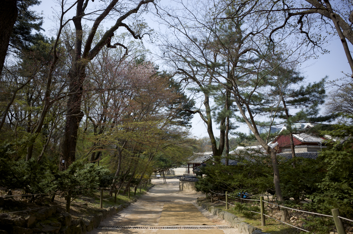 사실 영녕전까지 보고 나면 전각은 다 본 거라, 들어온 길로 다시 돌아가면 되는데, 일제에 의해, 그리고 현재는 율곡로로 끊겨 있는 동궁쪽으로 난 북쪽 담벼락을 보면서 걷고 싶어서 약간은 언덕을 올라가서는 정전과 영녕전 뒤편 길로 돌면서 봄꽃나무의 풍경을 즐기면서 내려왔습니다.