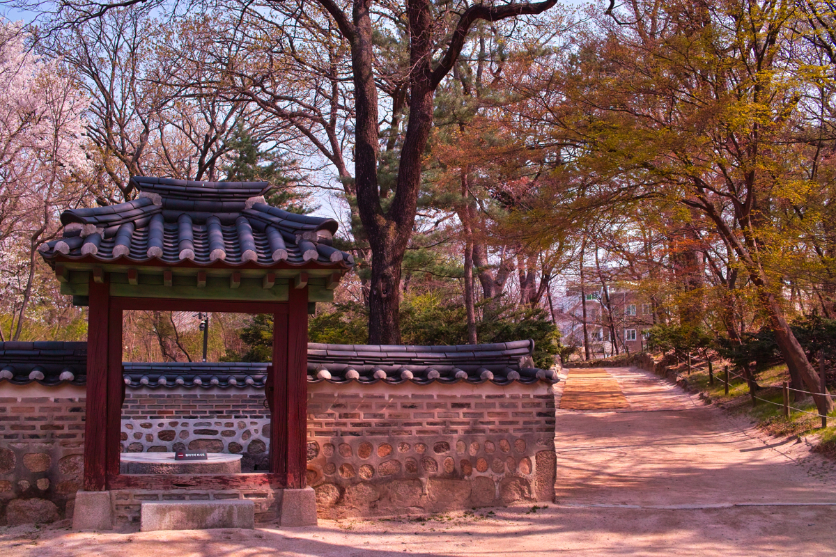 재실을 나와서 종묘 정전으로 가려고 하는데, 재실과 정전 사이의 돌길에 청설모도 보이고, 봄꽃도 피고... 솔직히 남의 집 사당에 왔는데, 혼자 꽃놀이 하며 즐기는 게 조금 미안한 맘도 들어서, 일단은 남신문을 지나 정전으로 들어갔습니다.