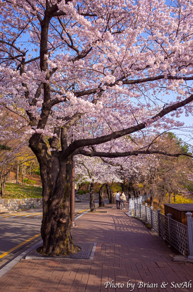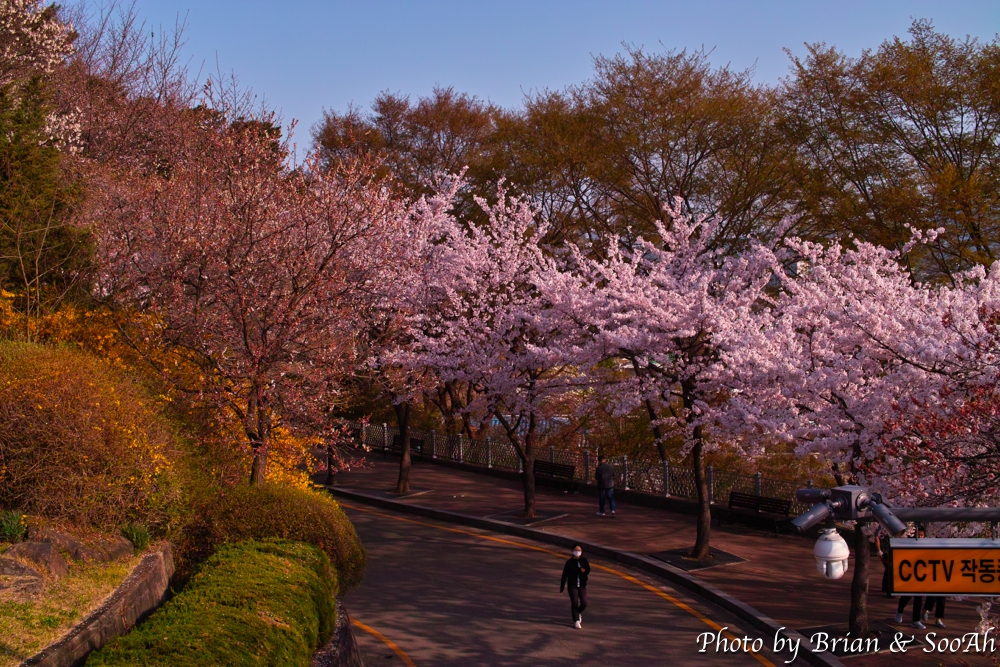 팔달산 산등성이를 따라서 팔달문에서 서장대로 올라가는 성벽과 그 사이 난 홍예문 사이로 난 길을 두고 양쪽에 벚꽃이 만발하고, 거기다가 길도 직선도 아니고 곡선으로 휘어지면서 사라지는 모습이다 보니, 어떻게 찍어도 그림이 되더군요. 올해는 늦게 알았지만, 내년에는 매일 저녁 산책하면서 봄 벚꽃놀이할 타이밍을 제대로 맞춰 보겠다는 의지를 다시금 불태워봅니다.