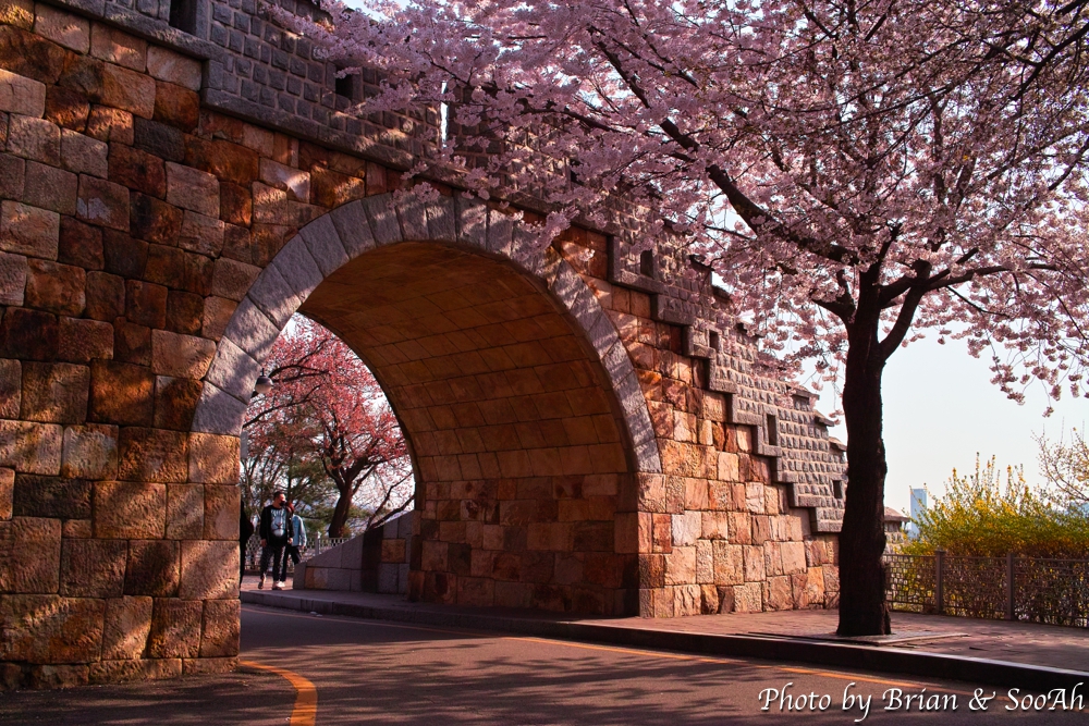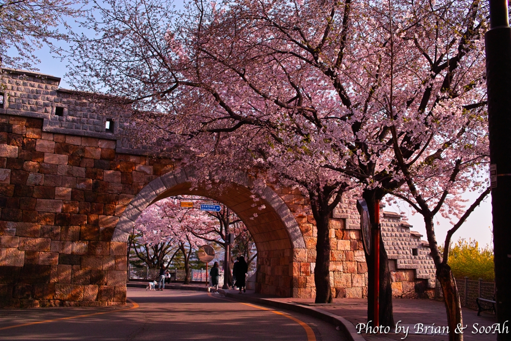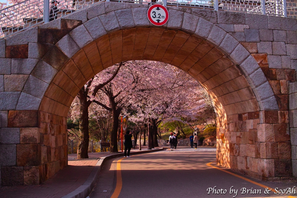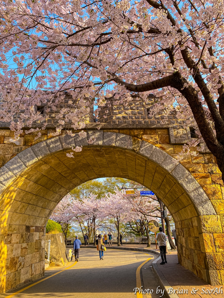 또 다른 장소는 집에서 가까운 동암문 권역이었습니다. 동암문 안쪽에 학교와 성벽 사이에 낮은 구릉지대에, 평소 지나갈 때는 몰랐는데 정말 많은 벚꽃이 피어 있더군요. 등잔 밑이 어둡다고, 집 앞에 이런 벚꽃 명소를 두고 그렇게 밖으로 돌아다녔다니...
