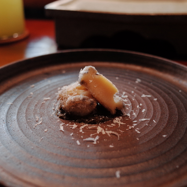 자리에 앉아서는 간단하게 확인 후에는 코스 차례대로 음식이 나오기 시작하더군요. 사진이 약간 어둡긴 하지만, 음식 사진과 이름만 쓰는 것으로 먼저 보여드리고, 마지막에 개인적인 감상을 쓰고 마무리 하겠습니다.