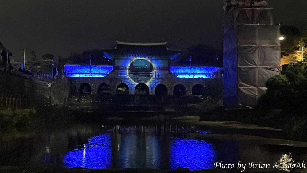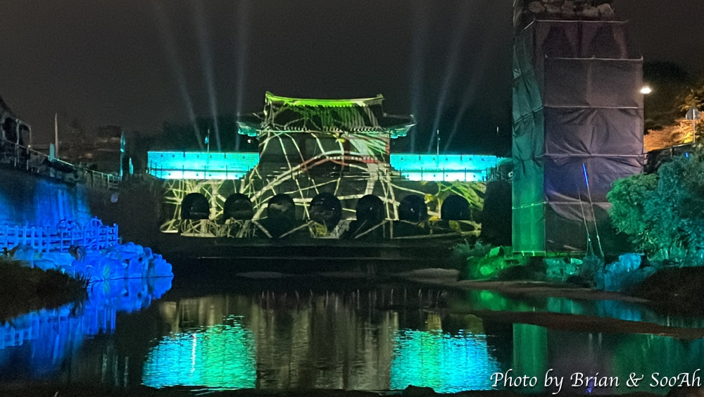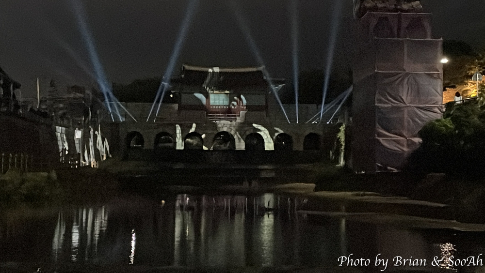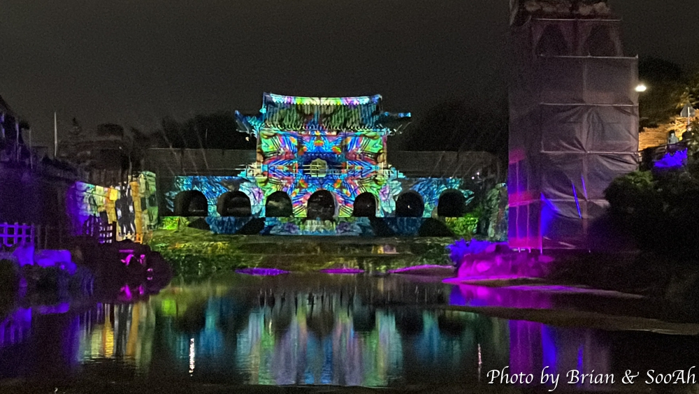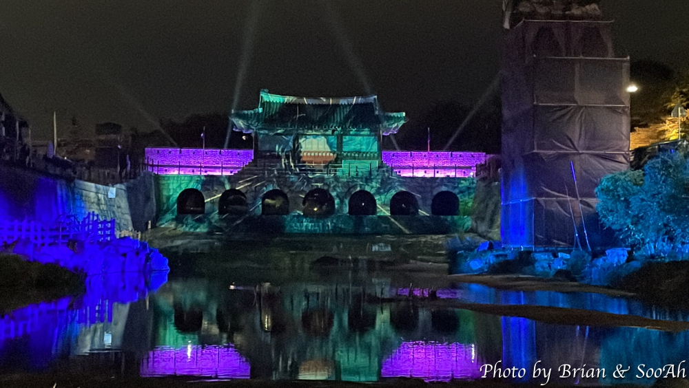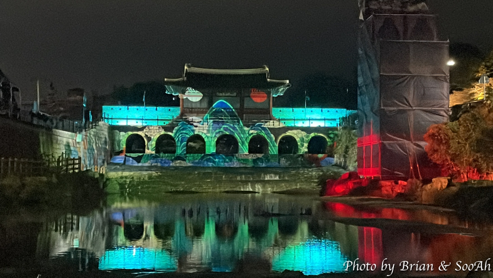 화성행궁 앞에 남북으로 유유히 흐르는 수원천을 따라서 남쪽의 남수문부터 북쪽의 북수문이자 화홍문으로도 불리는 곳까지 요즘은 매일 저녁에 미디어아트쇼가 진행되고 있는데요. 지난 번에는 남수문에서 하는 20분 정도의 미디어아트와 수원천을 따라 또 조명을 활용한 조형물이 있는 걸 글로 올렸었는데요. 이번에는 화홍문에서 하는 미디어아트로 별도 사전예약을 통해서 관람석을 판매했었습니다. 얼리버드로 해서 예약을 하고는 가 봤는데, 수원천 위로 목교를 설치하고는 거기에 관람석을 만들었더군요. 근데, 화홍문하고의 거리가 멀고 또 솔직히 말해 작년 화서문과의 규모의 차이로 인해 미디어아트 자체가 작은 사이즈다 보니 시인성이 좀 떨여져서 작년만 못한 느낌이었습니다. 작년에는 무료였는데, 올해는 유료 관람석을 만들었는데... 이럴 거면 그냥 수원천변길 위에서 보는 게 더 낫지 않았나 하는 생각도.. 올해 축제는 컨텐츠가 괜찮으면 진행이 아쉽거나, 컨텐츠가 작년보다 못하거나.. 조금 조금씩 계속 아쉽네요... 어찌 되었던 영상 찍으면서 캡쳐했던 이미지를 또 올려 봅니다.