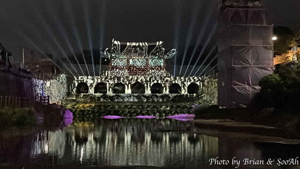 화성행궁 앞에 남북으로 유유히 흐르는 수원천을 따라서 남쪽의 남수문부터 북쪽의 북수문이자 화홍문으로도 불리는 곳까지 요즘은 매일 저녁에 미디어아트쇼가 진행되고 있는데요. 지난 번에는 남수문에서 하는 20분 정도의 미디어아트와 수원천을 따라 또 조명을 활용한 조형물이 있는 걸 글로 올렸었는데요. 이번에는 화홍문에서 하는 미디어아트로 별도 사전예약을 통해서 관람석을 판매했었습니다. 얼리버드로 해서 예약을 하고는 가 봤는데, 수원천 위로 목교를 설치하고는 거기에 관람석을 만들었더군요. 근데, 화홍문하고의 거리가 멀고 또 솔직히 말해 작년 화서문과의 규모의 차이로 인해 미디어아트 자체가 작은 사이즈다 보니 시인성이 좀 떨여져서 작년만 못한 느낌이었습니다. 작년에는 무료였는데, 올해는 유료 관람석을 만들었는데... 이럴 거면 그냥 수원천변길 위에서 보는 게 더 낫지 않았나 하는 생각도.. 올해 축제는 컨텐츠가 괜찮으면 진행이 아쉽거나, 컨텐츠가 작년보다 못하거나.. 조금 조금씩 계속 아쉽네요... 어찌 되었던 영상 찍으면서 캡쳐했던 이미지를 또 올려 봅니다.