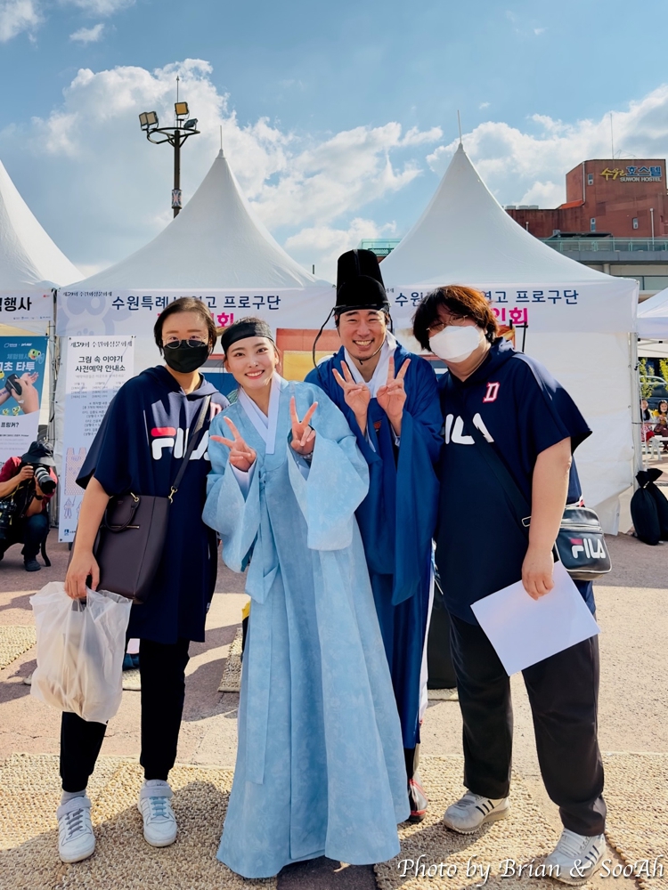 이번에도 처음 진행되는 것으로 기억하는 축제 관련 행사를 사전 예약을 해서는 축제 기간 2번째 토요일 오후를 보냈습니다. 근처에서 식사를 하고 체내 커피 농도를 높인 후에 시간 맞춰 집결장소에 가보니 아직 많이들 안 오셨더군요. 실제로 행사 시작하는데, 오후 2시에다가 무료 사전예약이다 보니 노쇼 하신 분도 계셔서... 20명 예약을 받은 것으로 아는데, 10명 정도 행사에 참여했던 거 같습니다. 나중에 수원문화재단 유튜브에 올라온 영상을 보니 다른 타임에는 특히 어린 친구들이 많이 와서 꽤나 활발한 분위기여서 참 다행이라는 생각이 ㅎㅎㅎㅎ.