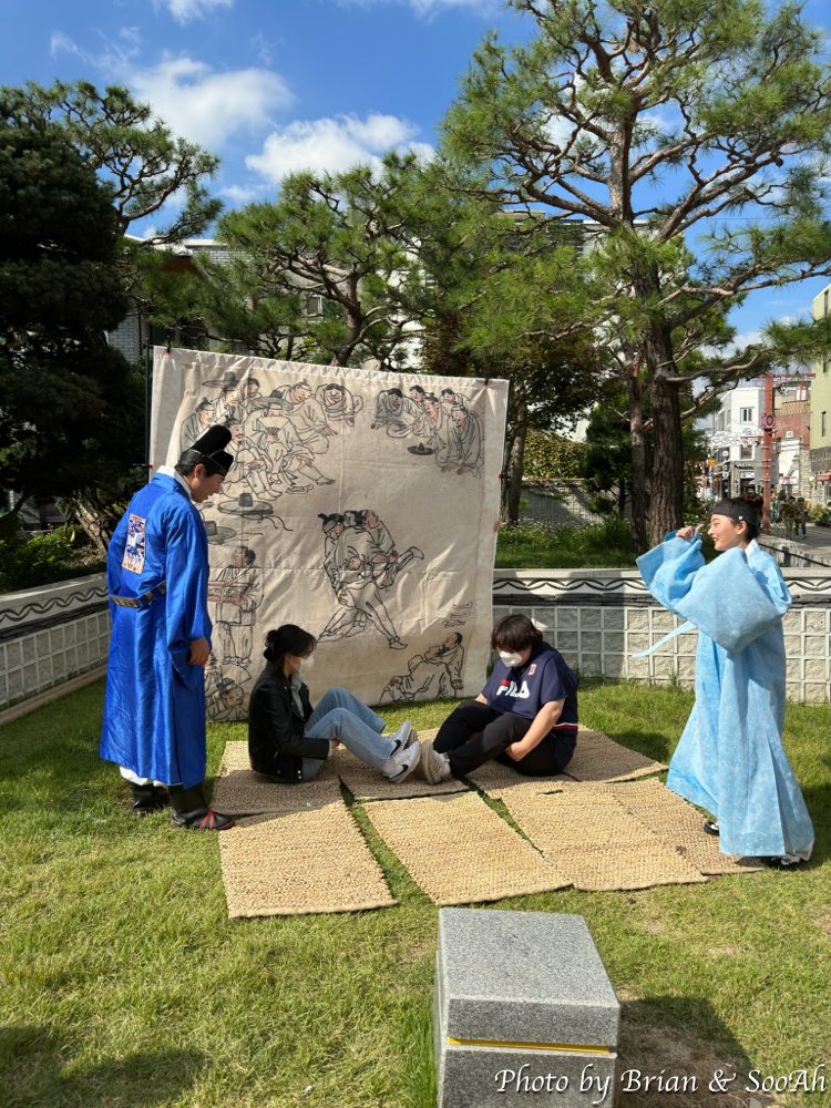 그렇게 "씨름"을 가지고 한바탕하고는 장소를 이동해서는 신윤복의 "월하정인" 그림이 있는 곳으로 이동해서는, 그림 속의 두 정인이 실제로 나와서는 알콩달콩한 장면을 연출하다가는 결국 헤어져야 하는 상황과 거기에 맞는 마치 뮤지컬처럼 노래를 부르는 것까지 관람하는 게 진행되었었습니다.