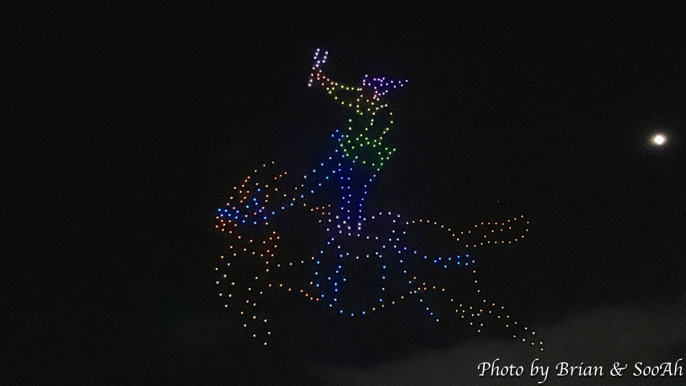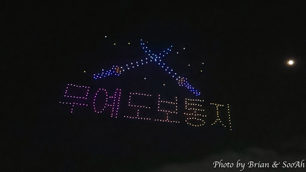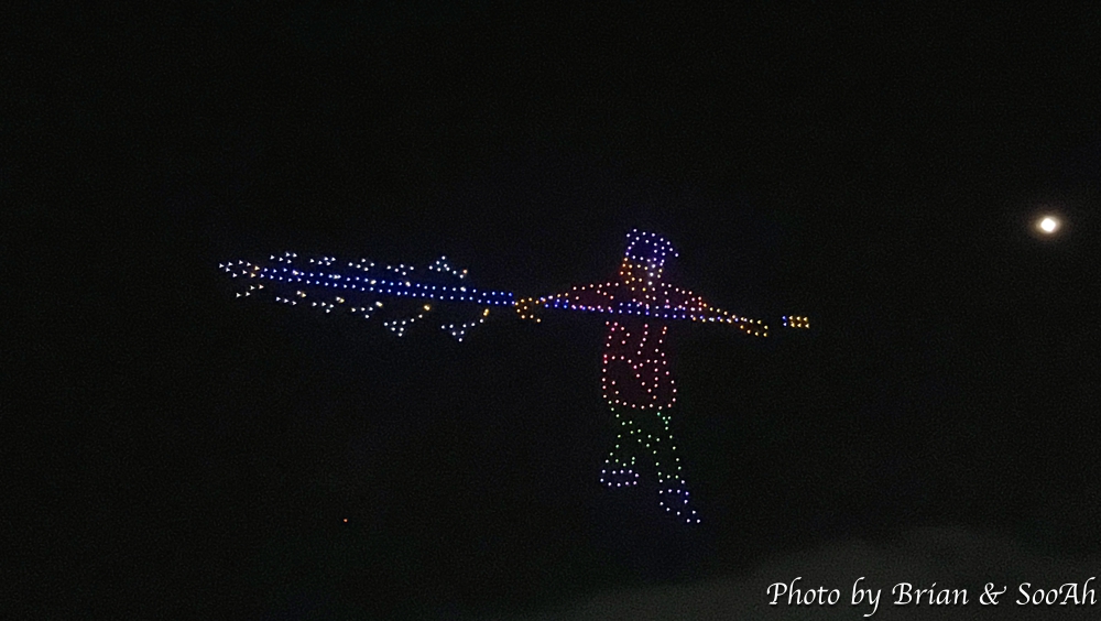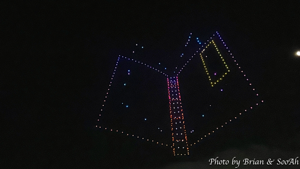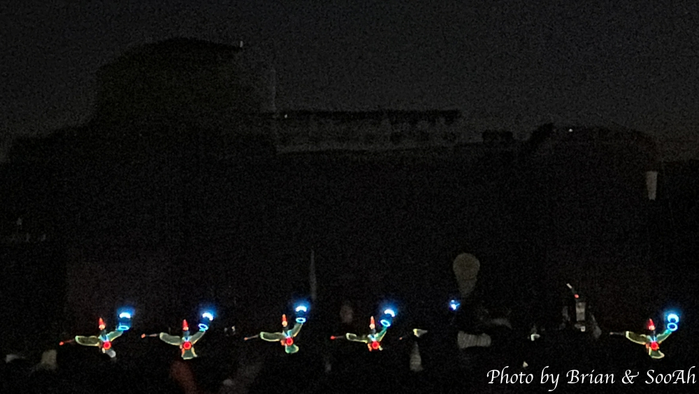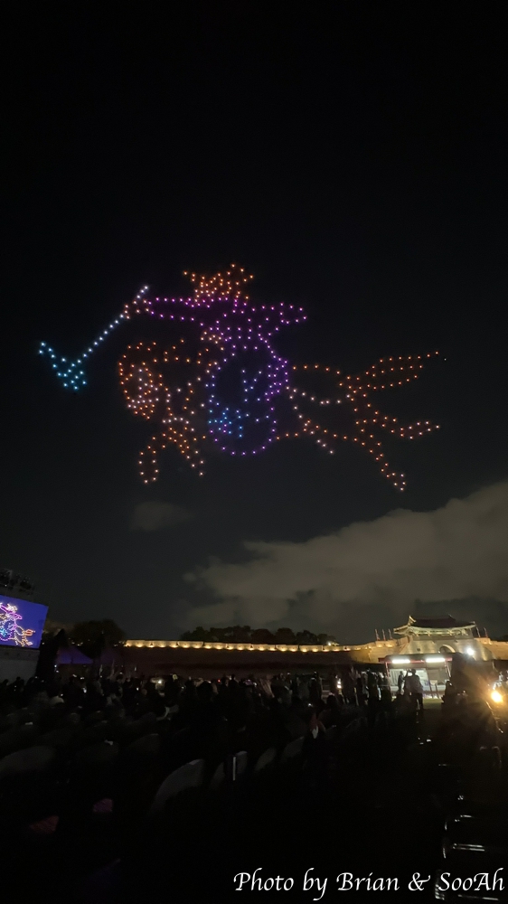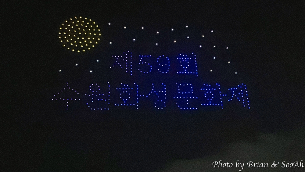 그리고, 지난 공연에 비교해서 한가지 추가된 공연은... 이게 다 평창올림픽 덕분(?)인데... 바로 공중 드론쇼였습니다. 수원화성과 관련된, 특히 야조와 관련된 내용으로 그 수많은 드론들이 일사불란하게 움직이는 게 정말 장관이더군요. 이 드론 공연까지 해서 콘텐츠만큼은 참 잘 준비한 게 보여서 그 수고에 감사를 드리고 싶어졌습니다. 물론, 행사 진행의 아쉬움 때문에 둘째날은 또 보러 나가지 않긴 했지만서도요...
