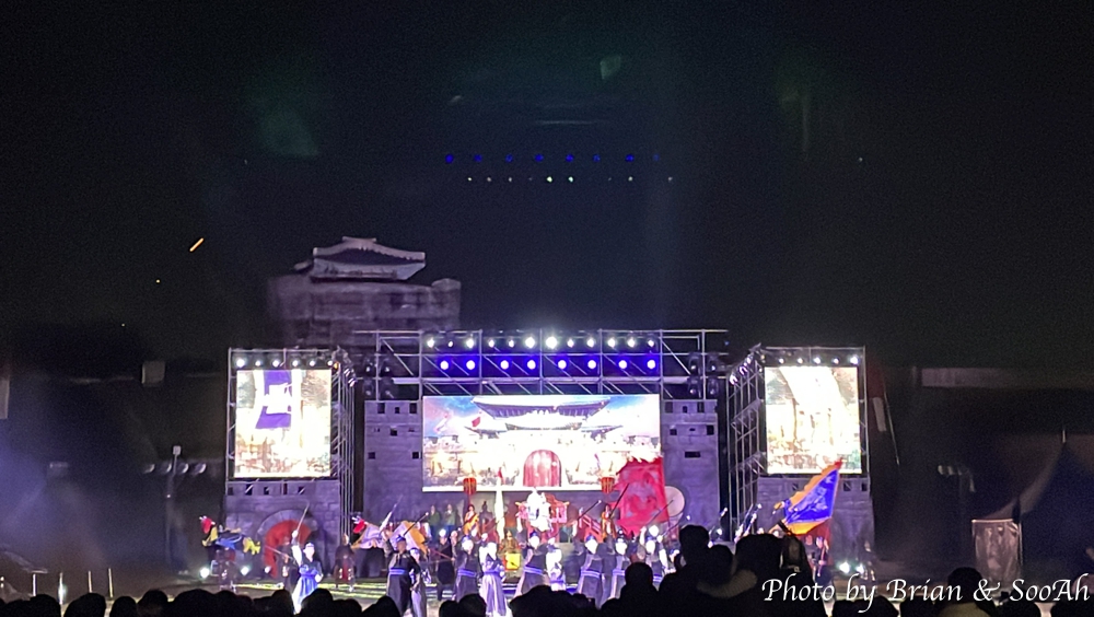 공연은 시작할 때 그 놈의 귀빈들, 특히 시장이 나와서는 자화자찬하며 박찬호급 투머치토커 짓을 해서 더 열이 받았는데... 그래도 공연은 멀리서 봐도, 처음 봤을 때만큼 감동이 오더군요. 여러가지 장용영의 무술 훈련, 특히 마상훈련은 더욱 더 멋있었고, 거의 마지막에 한 군무는 LED 효과와 함께 너무나 화려해 보였습니다.