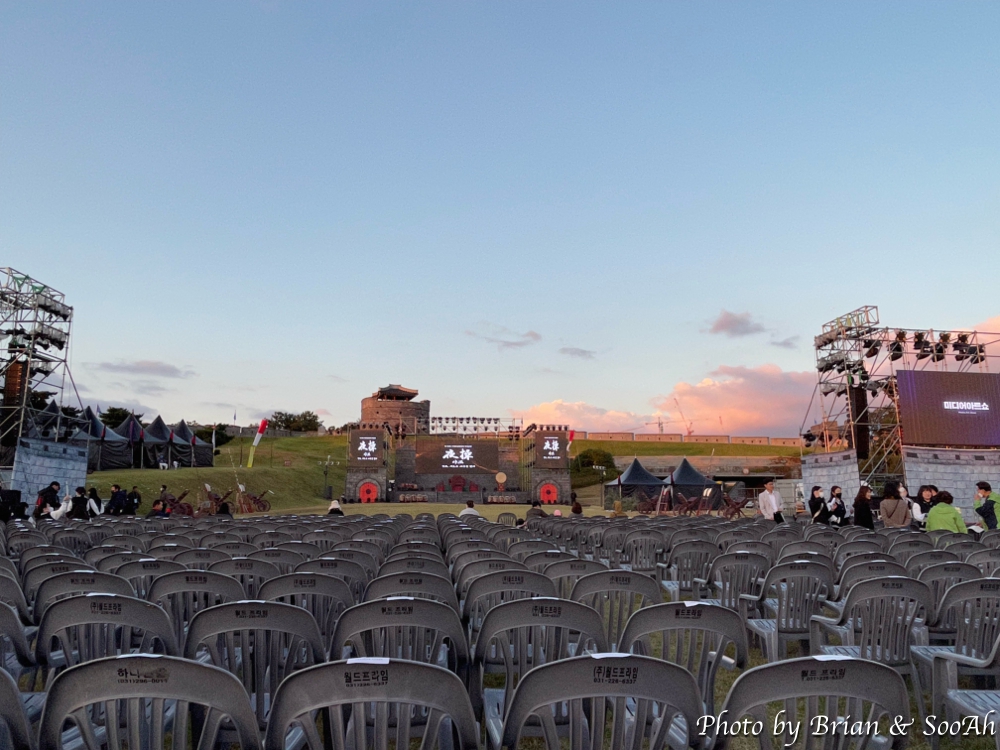 정상적으로 진행되었던 걸로는 가장 최근이었던 2019년 수원화성문화제에서 창룡문 안쪽 벌판(?)에서 진행되고 도로를 막고 설치된 간이좌석 말고도 연무대 앞 들판에 자유로이 앉아서 구경할 수 있었던 폐막공연 "야조"에 대해서, 공연 퀄리티도 그렇고, 자유로이 들판에 앉아서 즐겁게 보냈던 좋은 추억을 가지고 있었습니다. 그래서, 이번에 다시 정상적으로 진행되는 2022년 수원화성문화제에서도 이 '야조'를 다시 해주기를 너무나 바랬는데, 개막공연으로, 그것도 2일이나 한다길래, 손꼽아 기다렸었는데요.