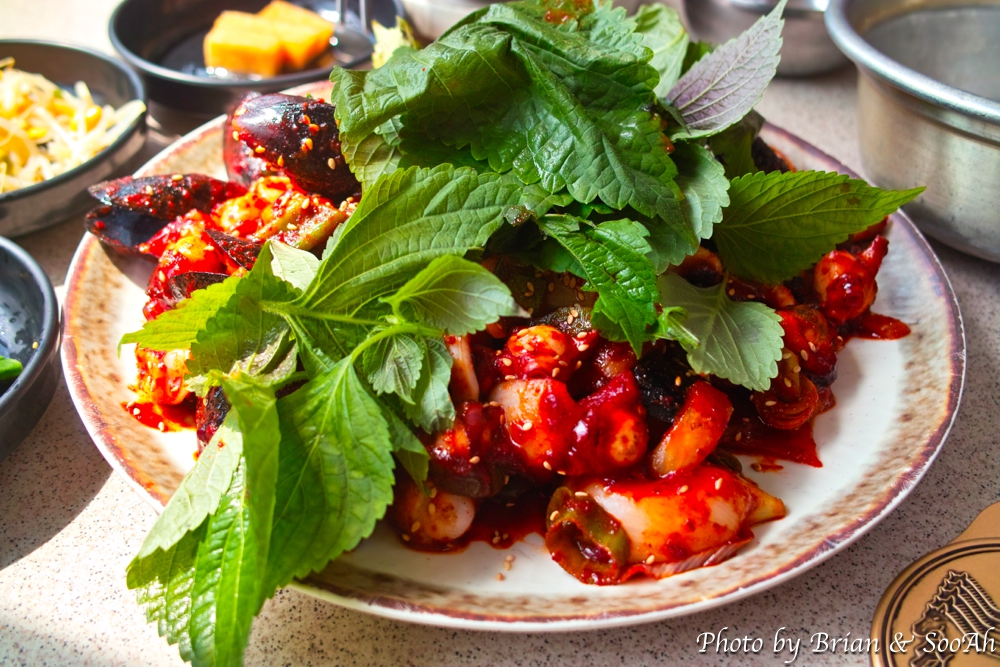 아침 바다바람을 쐬고 나서는 숙소로 돌아와서는 씻고는 아침 식사를 위해 종달리 쪽으로 내려갔습니다. 아침 9시부터 하는 가게들이 흔치 않아서 미리 찾아둔 가게가 바로 '소금바치 순이네'라고 하는 가게였네요. 해안로 바로 옆에 있어서, 해안로를 천천히 달려 세화, 하도를 지나서 종달리 수국길(이 땐 안 폈어요)을 지나니까 가게가 나오더군요. 이미 오픈 시간 맞춰 먼저 오신 분들이 자리를 잡고 계셨고, 저희도 자리를 잡아서는 바로 주문을 했더니, 차례대로 음식이 나오더군요. 이곳은 돌문어볶음이 유명한 곳인데, 싱싱한 문어를 양념과 채소, 기타 해산물이랑 잘 섞고 볶아 나와서 맛있게 먹었던 기억이 나네요. 그리고, 식사로 미역국도 같이 먹었는데 진하고 맛있었습니다.