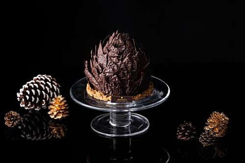 잔두야 초콜릿과 카시스에 졸인 사워 체리의 달콤하고 산뜻한 맛과 함께 잣 프랄린의 고소함을 더해 만든 솔방울 모양 케이크 - 원산지: 잔두야 초콜릿(스위스), 사워 체리(폴란드), 잣(중국산) |