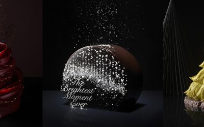 | 제철밤과 오렌지블로썸, 구운 타히티산 바닐라빈의 조화로운 케이크, 눈내린 통나무에서 영감받은 2022 Jardin d'Hiver 크리스마스케이크 | 프랑스산 발로나 초콜릿을 사용하여 키르쉬 리큐르와 다크체리를 더해낸 달콤하고 산뜻한 맛의 포레누아 케이크 | 바닐라 파운드와 바닐라 디플로마크림, 제철 딸기를 이용한 새로운 스타일의 2022 Jardin d'Hiver 케이크 |