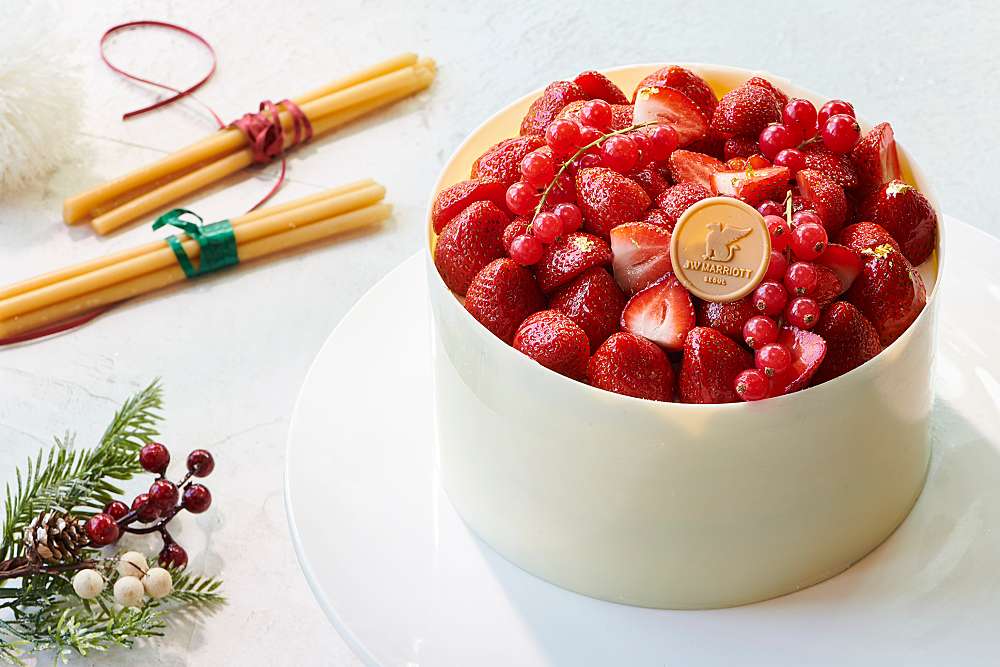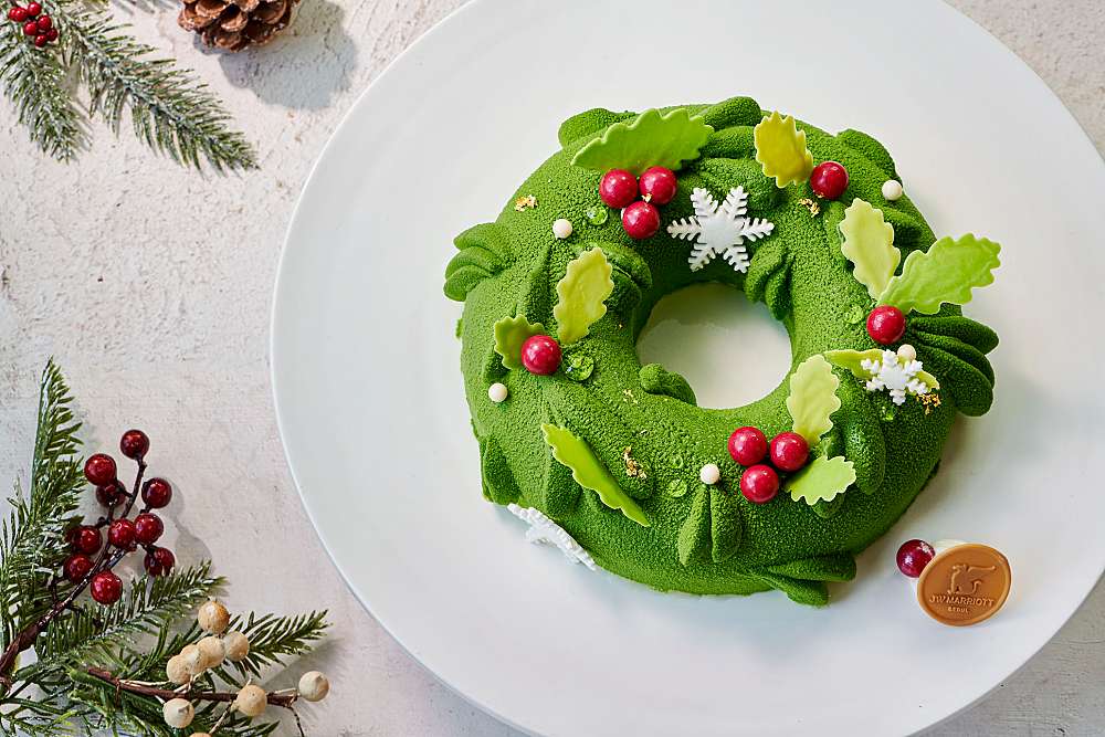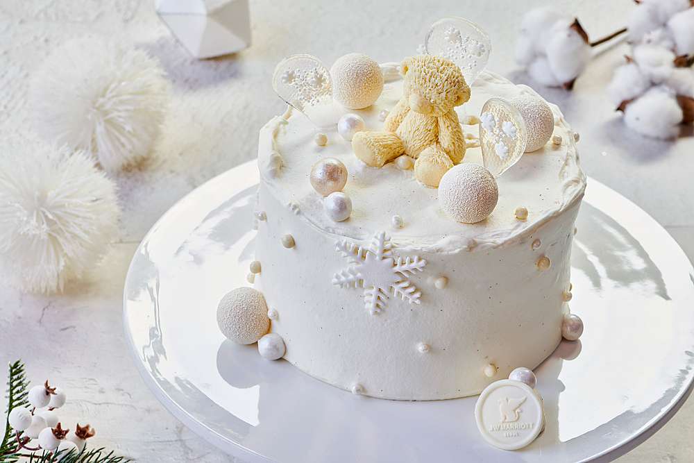 | 프랑스 최고급 발로나 초콜릿으로 만든 초코볼과 바닐라 마스카포네 크림을 샌드한 케이크로 하얀 눈이 소복하게 쌓인 화이트 크리스마스를 연상케합니다. 달콤한 화이트 초콜릿으로 곰돌이를 만들어 귀엽고 사랑스러움을 더했습니다. | 통나무에 기대 쉬고있는 곰돌이를 형상화하여 JW 메리어트 호텔 서울만의 스타일로 재해석했습니다. 블랙베리 초코 무스 안에 얼그레이와 체리 젤리를 곁들였스며, 화이트 크런치와 초코 스펀지가 담겨 한 조각으로 풍성한 맛을 즐기실 수 있습니다. | 크리스마스 분위기에 잘 어울리는 크리스마스 리스를 형상화하여 나뭇잎 모양의 초콜릿으로 포인트를 더한 무스 케이크입니다. 달콤한 피스타치오 무스 안에 새콤달콤한 카시스 젤리와 바삭한 식감의 피스타치오 푀이유틴, 다쿠아즈가 층층이 담겨 부드러운 식감을 자랑합니다. |