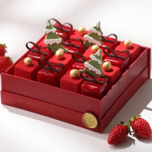 | 설레는 크리스마스를 만들어 줄 선물을 생각하며 만든 케이크로, 약 8시간 이상 소요되는 딸기 초콜릿 선물 상자 안에 생딸기와 마스카르포네 크림으로 샌드 된 초콜릿 스펀지케이크가 들어 있습니다. 선물상자 주변에는 트리 모양의 무스 케이크와 산타 머랭, 딸기, 마카롱 등으로 장식했습니다. *알레르기 정보 : 인스피레이션 딸기 초콜릿(프랑스산), 딸기(국내산), 계란(국내산) |