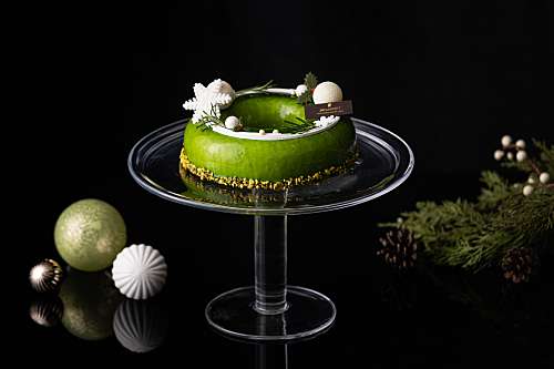 | 피스타치오와 조화로운 딸기를 이용하여 딸기 가나 슈몽떼 크림, 피스타치오 파운드가 들어간 진한 피스타치오 화이트 크리스마스 케이크 - 원산지: 피스타치오 페이스트(프랑스), 화이트 초콜릿(벨기에), 딸기 퓌레(프랑스) |