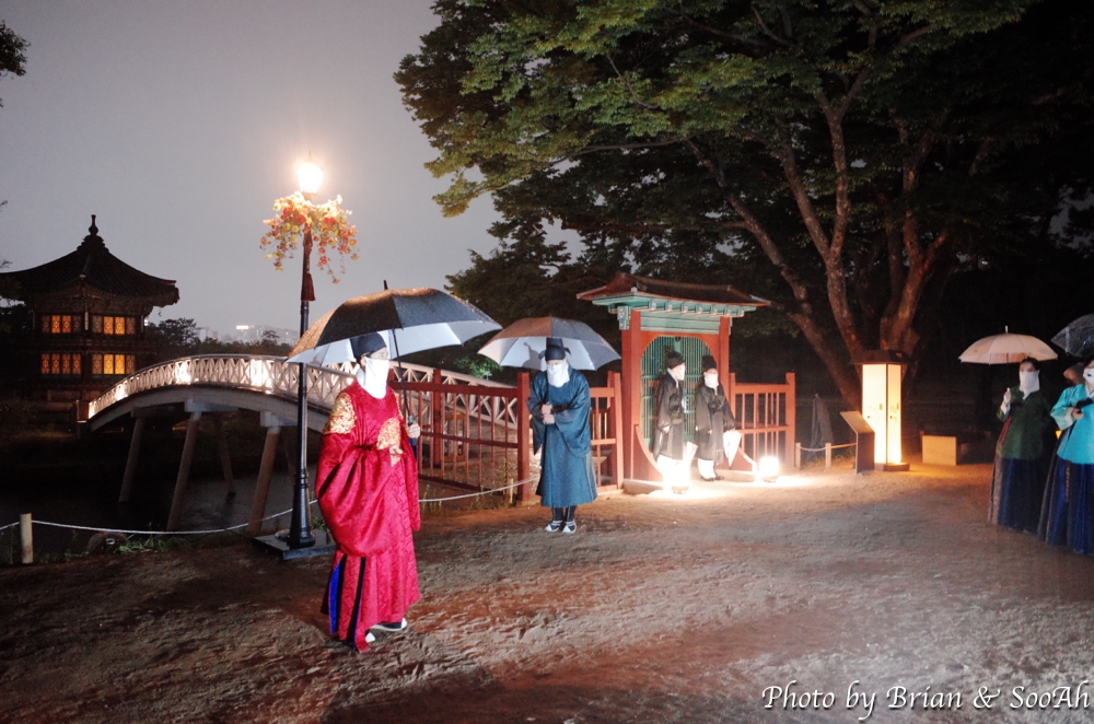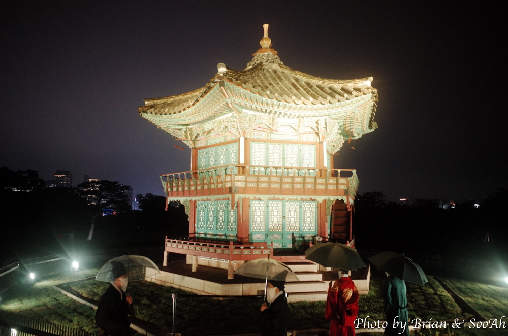 팔우정에서 동쪽에 위치한 건천궁 내부를 들어가서는 장안당에 설치된 화면에서 영상을 보고는 드디어 그 앞의 호수와 향원정으로 이동했습니다. 보통은 향원정으로 가는 다리 앞에 문이 잠겨 있어서 그냥 멀리서만 쳐다 보는데, 이번 야행에는 향원정의 그 다리를 건너서 인공섬까지 들어가 보는 게 있었습니다. 근데, 그 때 쯤 갑자기 폭우가 쏟아져서 사진은 제대로 못 찍었네요. T.T 다시 한 번 또 이 행사를 와야할 이유가 생겼구요. 언젠가는 향원정 내부를 볼 수 있는 행사를 기대하며 사진으로 마무리 합니다.