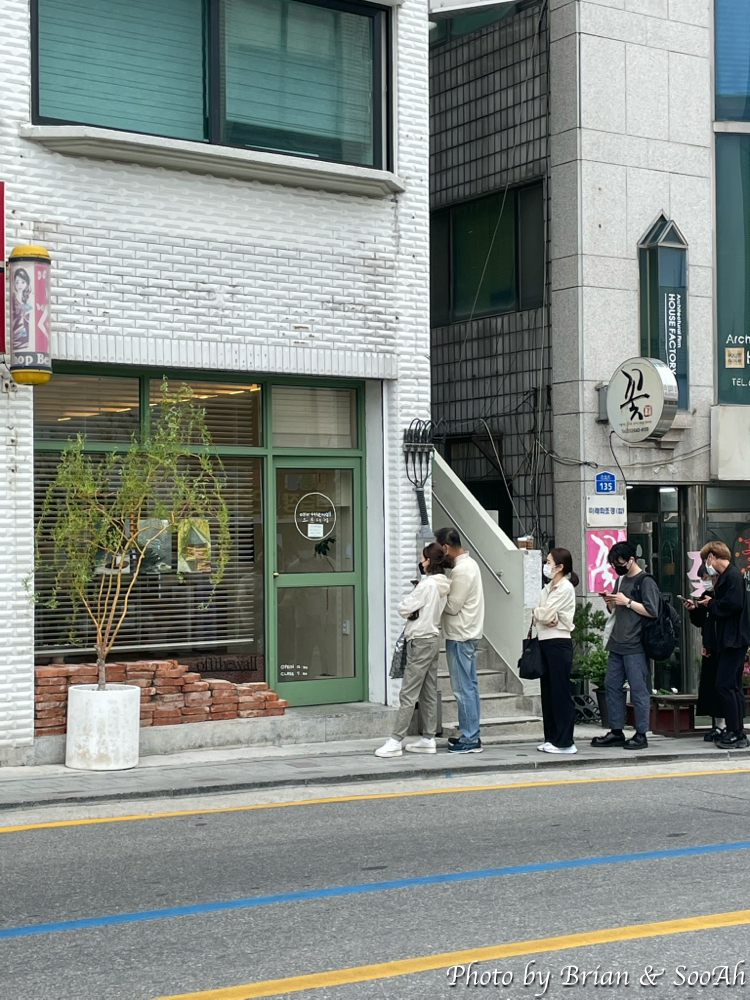 선교장에서 관람을 마친 후에는 마나느님이 픽한 베이커리-휘낭시에/타르트 맛집인 오프더월로 가기 위해 시내로 이동했습니다. 여기는 가게가 크지 않고 별도로 음식이나 음료를 먹을 공간이 없기 때문에, 가게 밖에 줄 서서 한 팀씩 들어가서 주문하고 빵을 받아서 나오는 식으로 운영되는데요, 미리 만들어 놓은 빵들이 다 떨어지면 문을 닫기 때문에.... 이 날의 두번째 오픈런을 하러, 근처 공영주차장에 차를 대고는 임영동성당 근처인 카페 앞에 가 서 있었습니다.