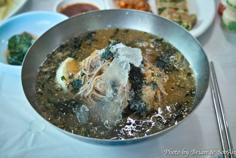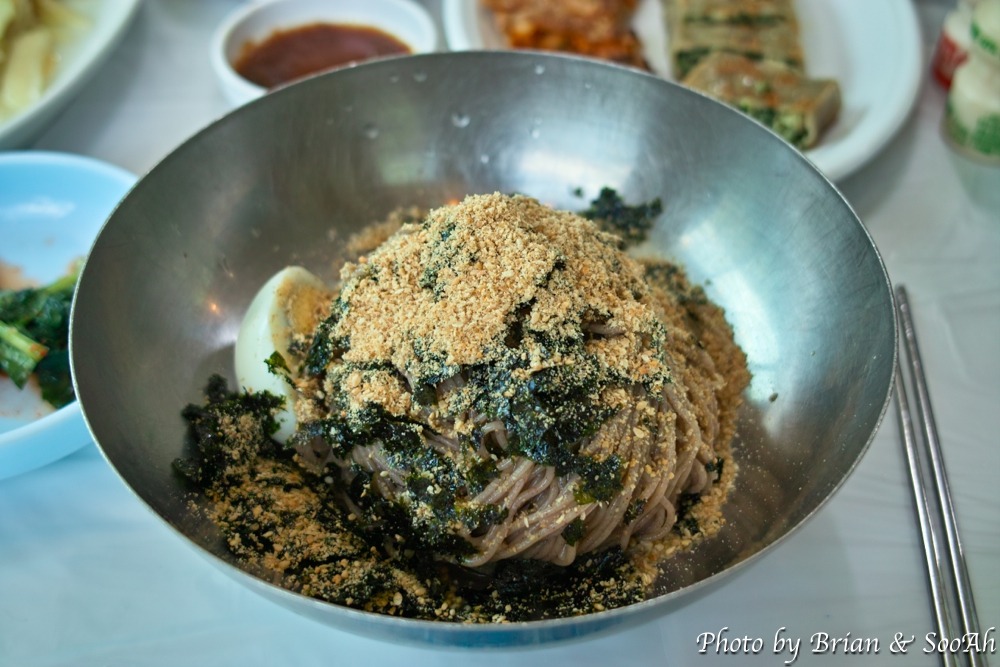 가게 내부는 그냥 일반 시골식당과 크게 다를 바가 없었는데요. 동치미막국수로 물막국수와 비빔막국수 그리고 전병을 시켰는데, 일단 나오는 반찬부터 정말 예전 할머니집을 생각나게 하는 분위기였습니다. 그리고 메밀전병도 구수하고 맛있었구요. 비빔막국수는 그렇다고 치고 물막국수도 그냥 면 위에 고명을 잔뜩 뿌려서 나오곤, 동치미가 단지로 별도로 나와서는 이걸 부어서 취향에 맞게 물막국수를 만드는 식이더군요. 그렇게 면이랑 국수를 먹다가 또 동치미를 리필하기도 하고... 그리고 비빔막국수도 똑같은 방식으로 먹으니까 취향에 따라서 즐길 수 있어서 좋더군요. 시큼한 동치미가 동치미를 크게 즐기지 않는 저에게는 조금 부담스럽긴 했지만, 고명과 전병 등의 조화를 통해서 막국수를 맛있게 즐겼습니다.