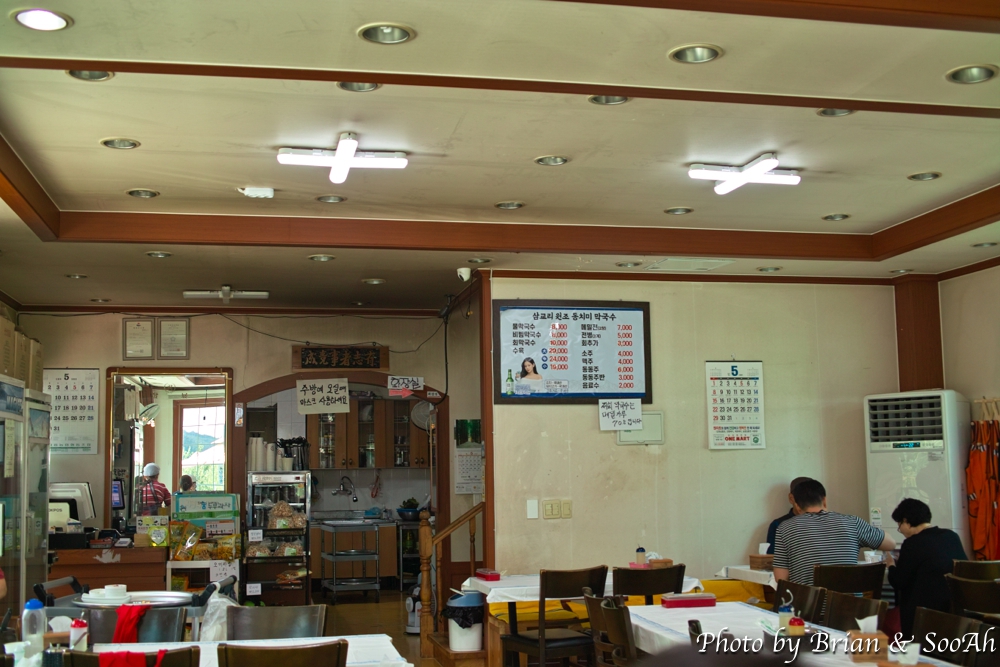 오죽헌을 관람하고 나서는 늦은 점심을 먹기 위해서, 그리고 그 다음 일정을 고려해서 주문진 쪽으로 올라갔습니다. 주문진 쪽으로 가다가 바다가 아닌 내륙쪽으로 가다가, 여기에 정말 가게가 있나 싶을 정도로 한적한 길을 들어가다 보니 '삼교리원조동치미막국수'라는 가게에 도착했습니다. 일손이 부족하신지 이제는 오후 5시 이후로는 영업을 안 하신다는 얘기가 좀 가슴 아팠던 곳인데요.