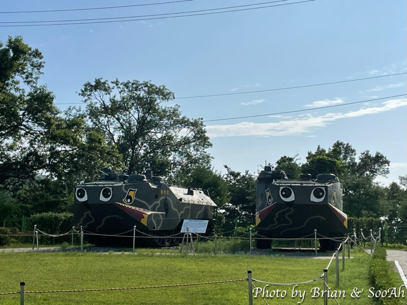 강화도 본섬의 북동쪽 끝에 위치했는데, 가다 보니 군 경계 지역 내라서 검문소에서 신분증을 검사 받고 통과를 시켜주더군요. 검문소를 지나서 한 5~10분 이상 달리고 보니, 전망대 주차장에 도착했습니다. 주차장에 도착하고는 매표소에서 입장권을 구매하고 나서는 꽤 가파른 언덕을 올라가니 나름 들판이 나오고 거기엔 전차 등이 전시되어 있더군요. 그리고 전망대를 들어가니 강화도와 남북관계에 관련된 전시물이 있고, 2~3층에는 전망을 할 수 있는 곳이 있었습니다.