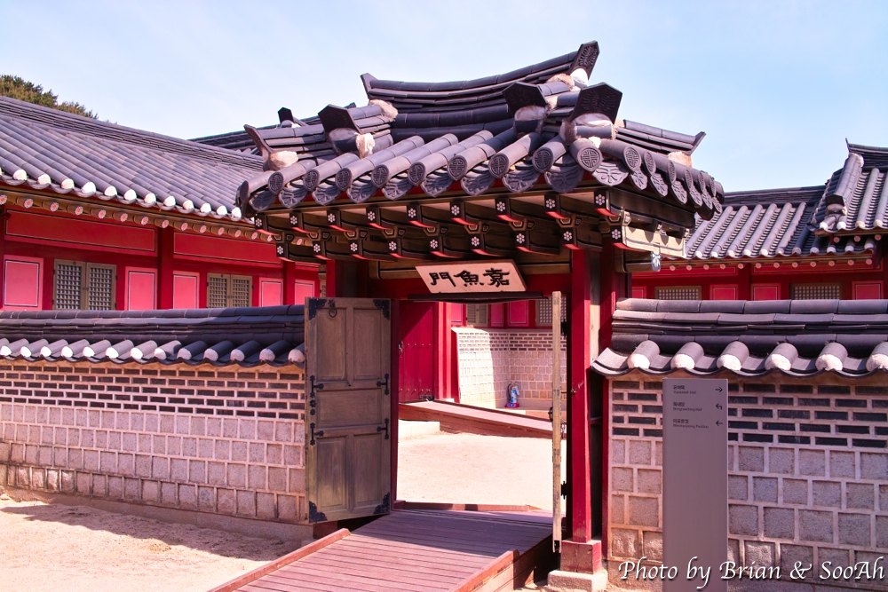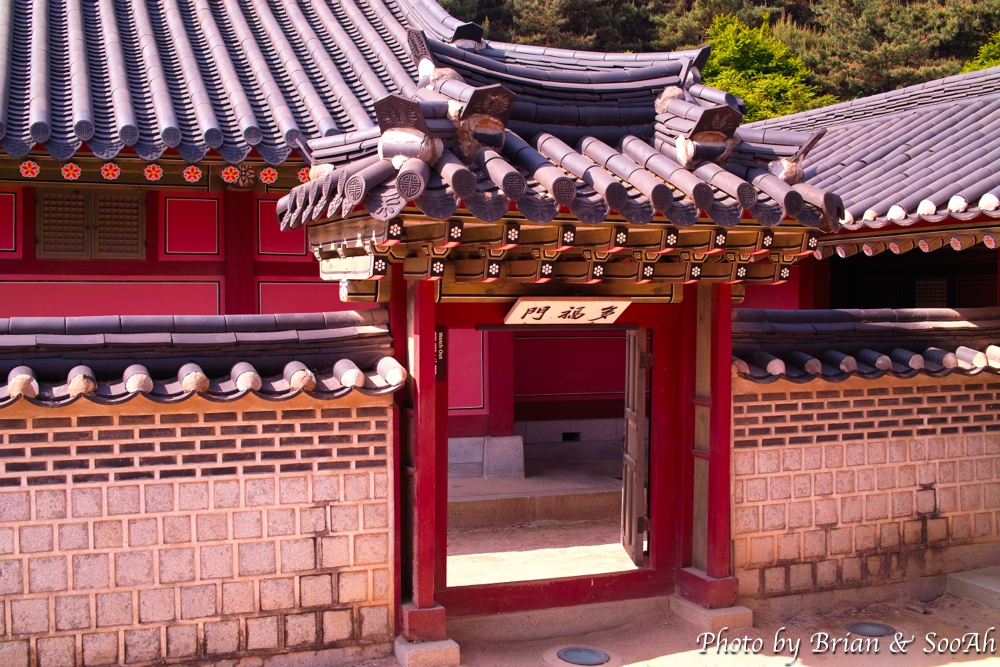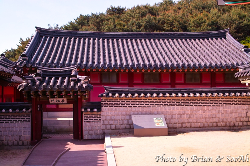 지난 글에서 얘기한 봉수당 뒤편의 길쭉한 직사각형의 모양을 한 마당을 걸어 지나서는 남쪽끝이자 행랑채 테두리의 마지막으로 가서는 장락당(長樂堂)으로 들어갔습니다. 여기는 봉수당을 바라봤을 때 왼편, 동서남북으로 보면 남쪽으로 이어진 침실에 해당되는 건물로 혜경궁 홍씨와의 화성행차 때는 혜경궁 홍씨가 머물던 곳이었습니다. 근데 여기는 사진을 깜빡했네요. 여기 사진은 안 찍고 여기서 복내당으로 나가는 2개의 문만 찍었는데, 여기 보면 이름이 다복문(多福門)과 장복문(長福門)으로 어머님의 장수, 복을 바라는 의미에서 그렇게 정조 임금이 그렇게 이름을 지었다고 하네요.
