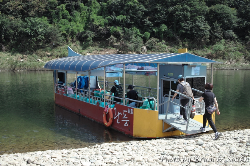 식사를 마치고 나서는 바로 옆의 장릉이 아닌 버스를 타고 조금 더 이동해서는 첫 방문지인 청령포로 이동했습니다. 아래 사진에서 보듯이 동강이 굽이쳐 돌아가는 그 너머의 청령포는 배를 타고 들어가지 않으면 뒤쪽으로 나 있는 숲과 산으로는 나갈 수 없으니, 서해나 남해의 고도에 위리안치 된 것과 같았을 게, 가보니가 알겠더군요. 늦더위가 기승을 부리는 초가을의 땡볕에 주차장에 차를 세우고, 나름 고개를 내려가서는 배를 타고는 청령포로 들어가는데, 청령포 쪽에 내려도 나무가 있는 그늘까지 가려면 꽤나 넓은 자갈밭을 걸어가야 하는데.. 여기 정말 갇혀 살았다면, 이 아름다운 경치가 과연 아름답게 느껴졌을까 싶어서 왠지 모르게 가슴이 메어오더군요.