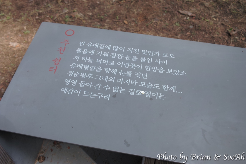 이렇게 한양을 떠나, 자신을 아껴줬던 할아버지 세종, 아버지 세종, 그리고 아내 정순왕후의 흔적은 하나도 찾아 볼 수 없는 외딴 곳 청령포에서 홀로 외로이 지냈을 단종을 떠올리면서 청령포를 돌아보고는 다시 배를 타고는 나와서는 다음 장소로 이동했습니다.