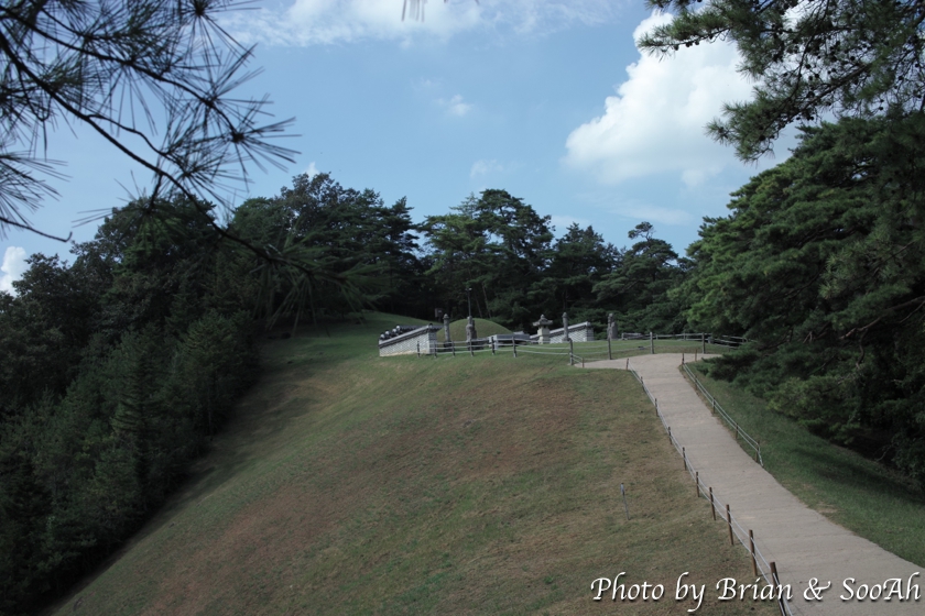 관풍헌에서 길지 않은 시간, 작렬하는 햇빛 아래서 설명을 듣고 잠시 둘러 본 후에는 바로 이 날 여행의 마지막 장소인 장릉으로 이동했습니다. 실제로 장릉은 일반적인 왕릉처럼 왕이 승하한 이후에 요즘으로 치면 TF인 산릉도감(山陵都監)이 설치되어 장지부터 왕릉의 조성까지 다 관장해서 만들어진, 정해진 규정대로 지어진 왕릉이 아니라, 앞선 글에서 얘기했던 엄흥도가 아무도 거두지 않는 단종의 시신을 몰래 수습해서는 남들 몰래 근처에 묘를 짓고 모신 곳이다 보니 홍살문이나 정자각 등이 함께 놓여질 공간도 없이 고개 위에 별도로 묘가 만들어지고, 이후에 숙종에 의해 추존이 된 후에 왕릉에 해당하는 양식으로 보수한 경우이기 때문에 능도 능 옆의 여러 조형물들도 그렇게 크고 웅장하다는 느낌이 없습니다. 그리고, 언덕을 한참 올라가야 능을 볼 수 있다는 것도 다르구요.