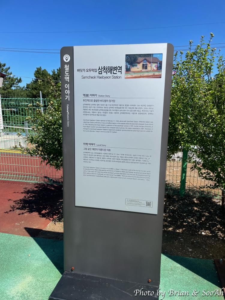 해변에서 조금 놀다가 근처 커피점에서 커피랑 팥빙수를 먹으면서 허기와 카페인지수를 충당한 후에는 바로 옆에 있는 임시역사로 되어 있는 삼척해변역으로 갔습니다.
