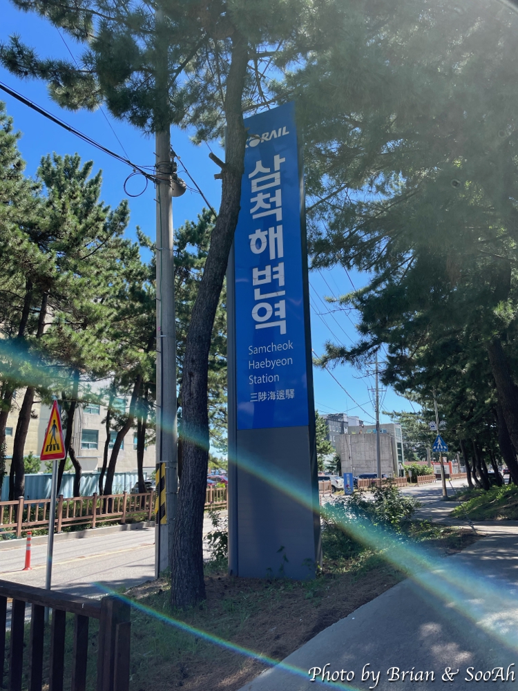 터미널에 내려서는 "동해바다열차"의 종착역이자 시작역인 "삼척해변역"이 있는 삼척해수욕장까지는 택시를 타고 갔습니다. 다행히 친절한 기사님을 만나서 시간 여유도 있고 해서 바로 가는 길로 가지 않고 해변길로 돌아가서 삼척 바닷가를 해안도로를 타고 가서는 삼척해수욕장에 내려서 바다도 보고, 요즘 '산토리니' 풍으로 꾸며서 핫하다고 하는 S 리조트도 한 번 바라보고 했는데... 사진이 제대로 안 나와서 이건 다음 기회에....