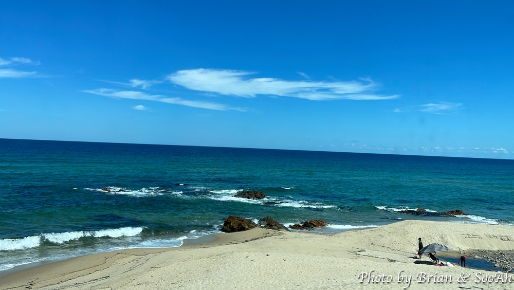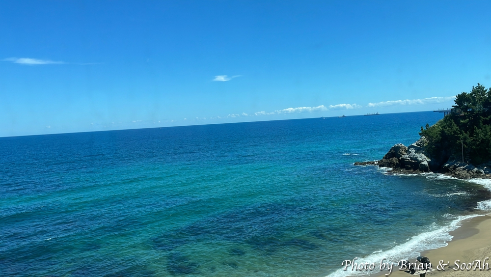 삼척해변역에서 강릉역으로 출발한 열차는 잠깐 바다를 보고는 삼척을 지나 동해역까지는 계속 시내랑 언덕들만 지나가는데요, 동해역에서 정차한 후 출발한 열차는 또 시내를 지나다가 잠깐 터널 비스무리하게 된 곳을 지나고나서는 정말 바다가 보이는, 해변을 달리는 말 그대로의 바다열차가 됩니다.